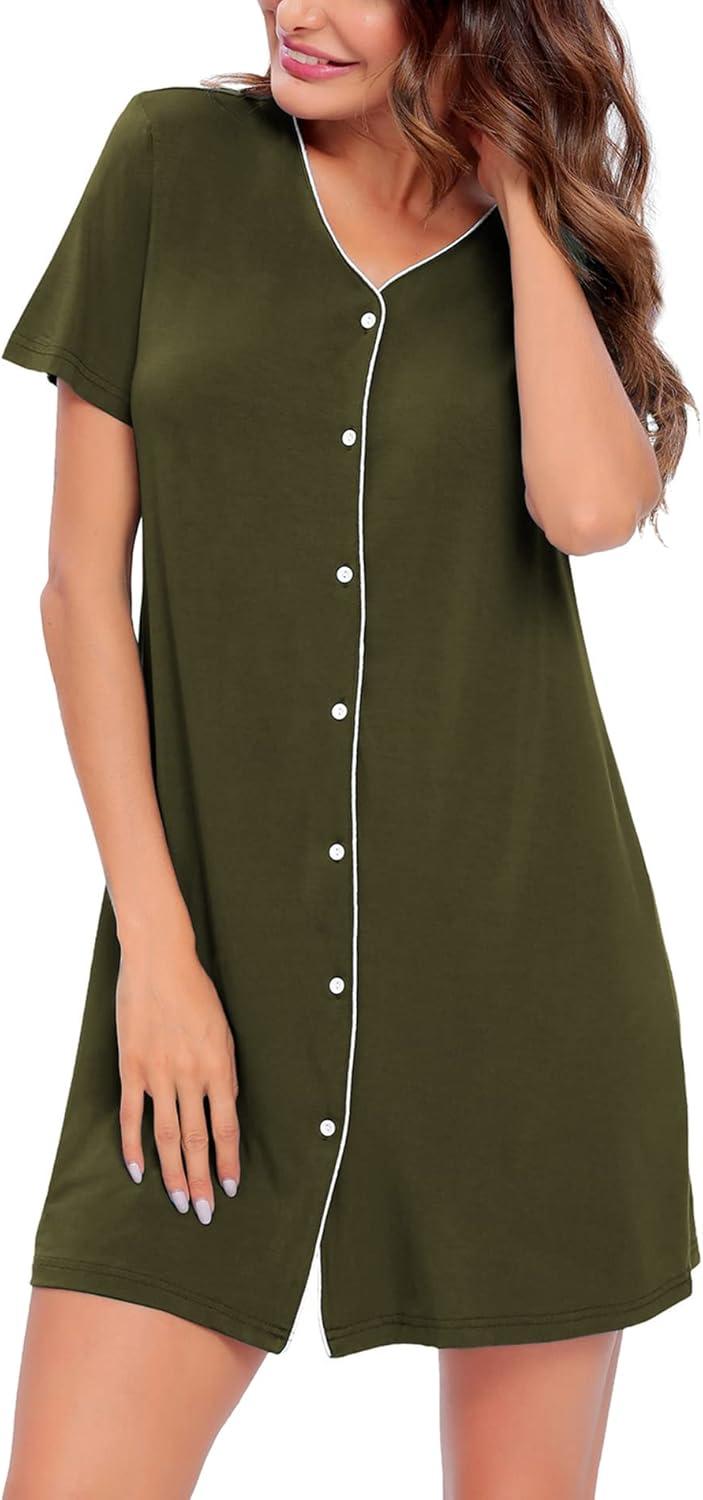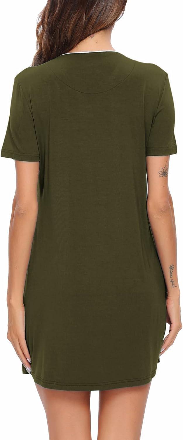 SWOMOG 2 Pack Nightgown for Women V Neck Soft Short Sleeve Sleepshirt Pajama Dress Soft Modal Nightwear(Army Green)