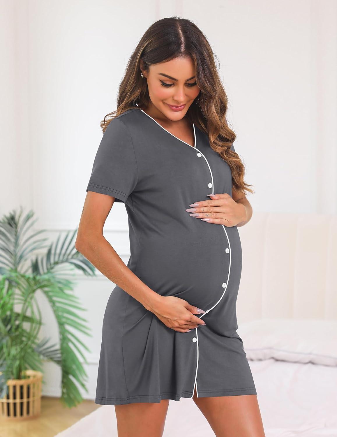 SWOMOG 2 Pack Nightgown for Women V Neck Soft Short Sleeve Sleepshirt Pajama Dress Soft Modal Nightwear(Light Grey)