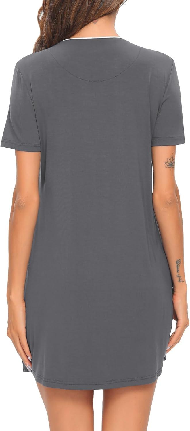 SWOMOG 2 Pack Nightgown for Women V Neck Soft Short Sleeve Sleepshirt Pajama Dress Soft Modal Nightwear(Deep Gray&black)