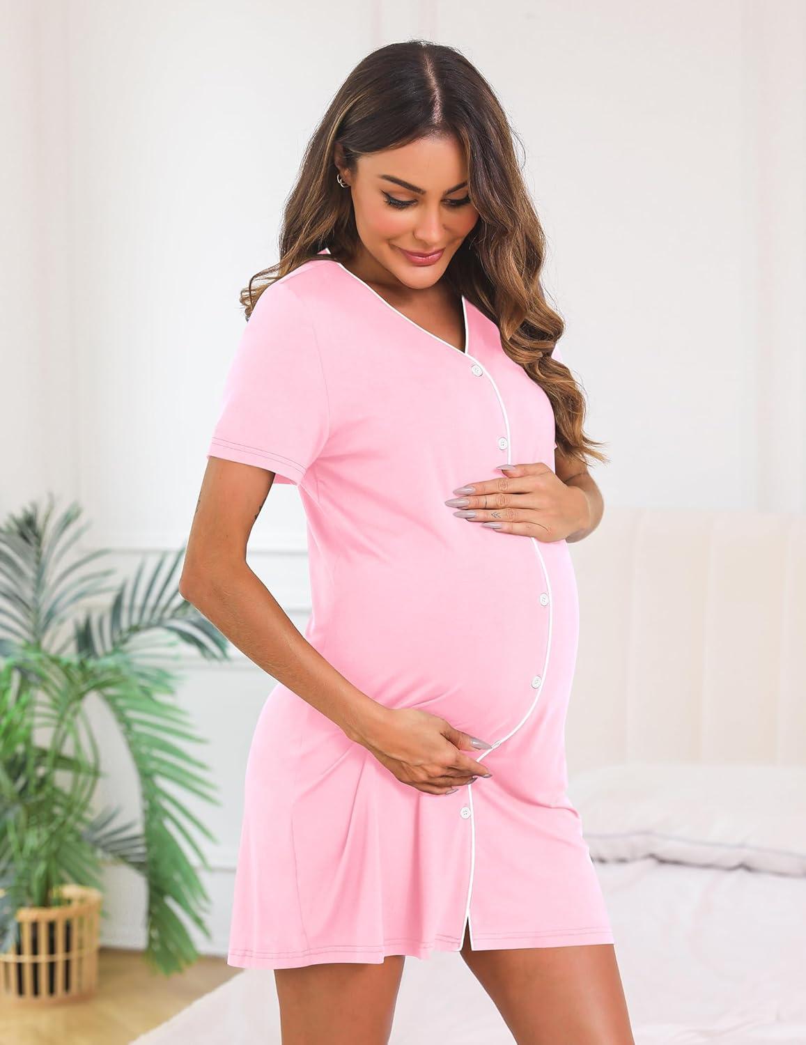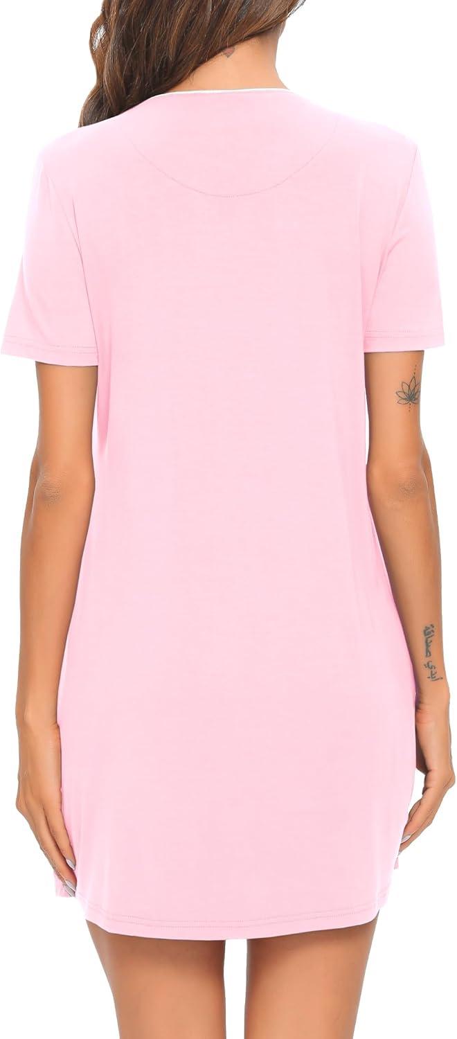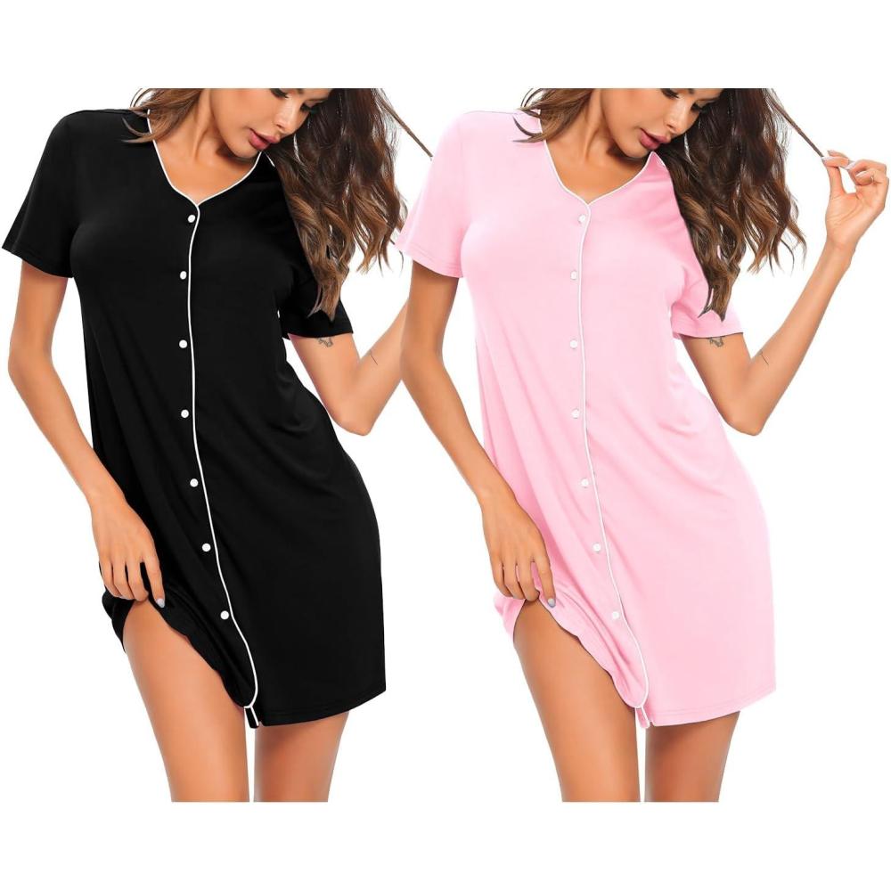 SWOMOG 2 Pack Nightgown for Women V Neck Soft Short Sleeve Sleepshirt Pajama Dress Soft Modal Nightwear(Pink&black)