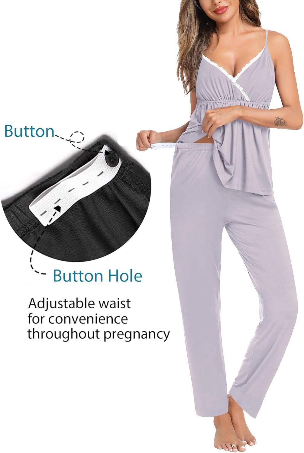 SWOMOG Maternity Nursing Robe Set 3 Piece Breastfeeding Pajamas 3 in 1 Labor Delivery Sleevless Tops&Long Pants Pregnancy Pjs(Blue Green)