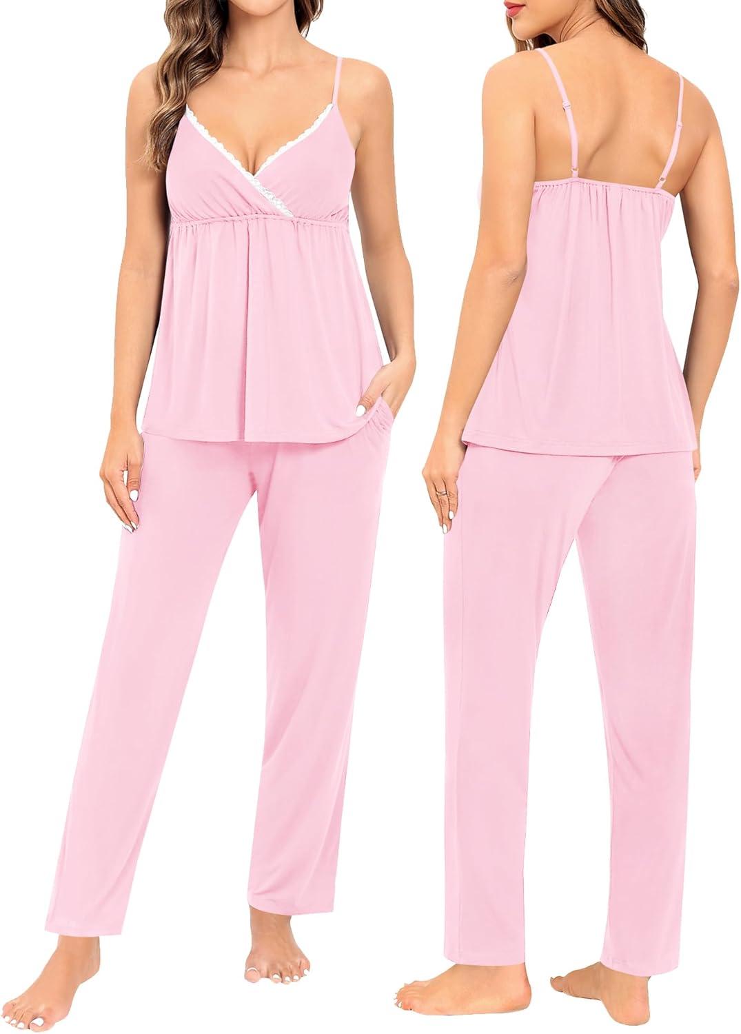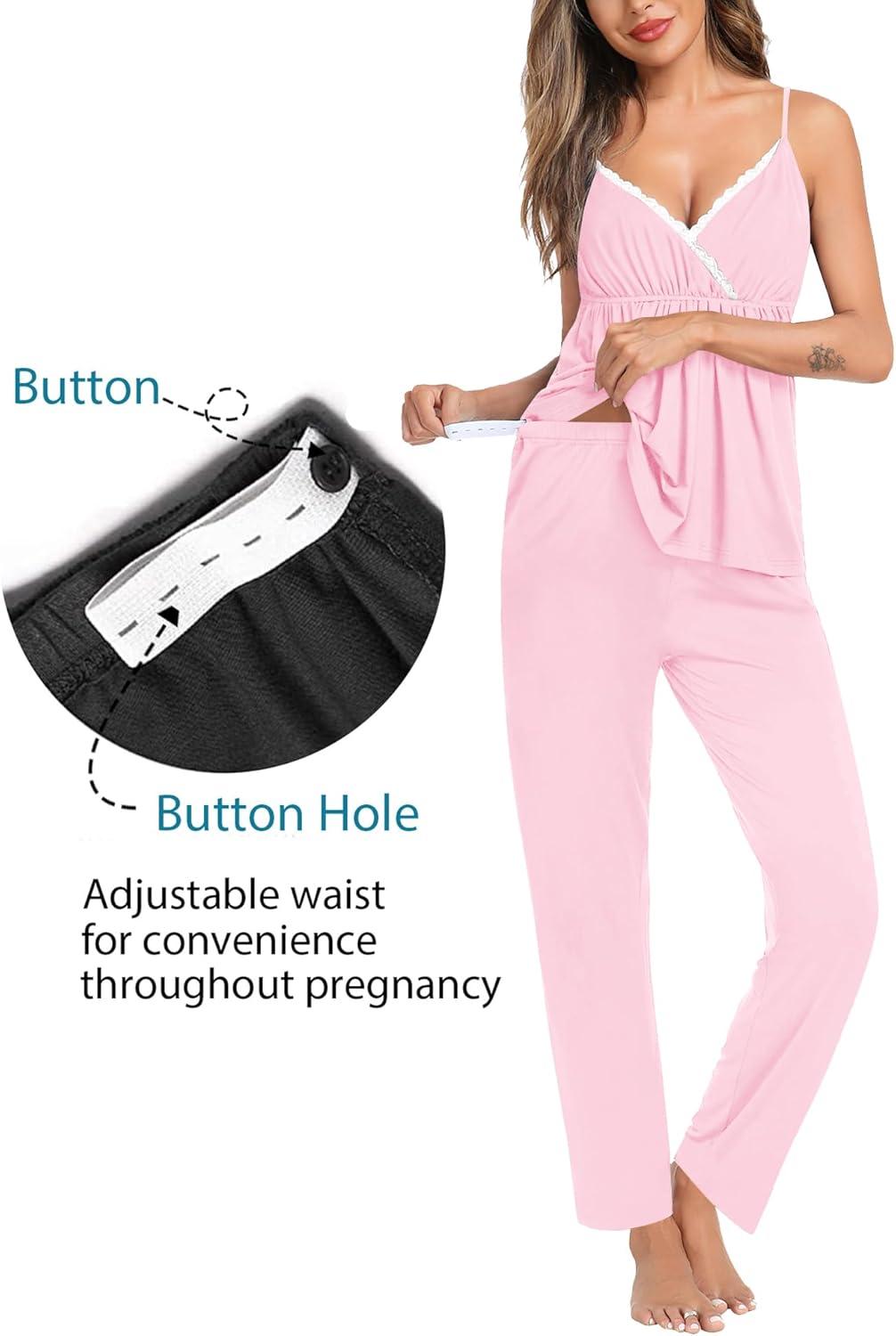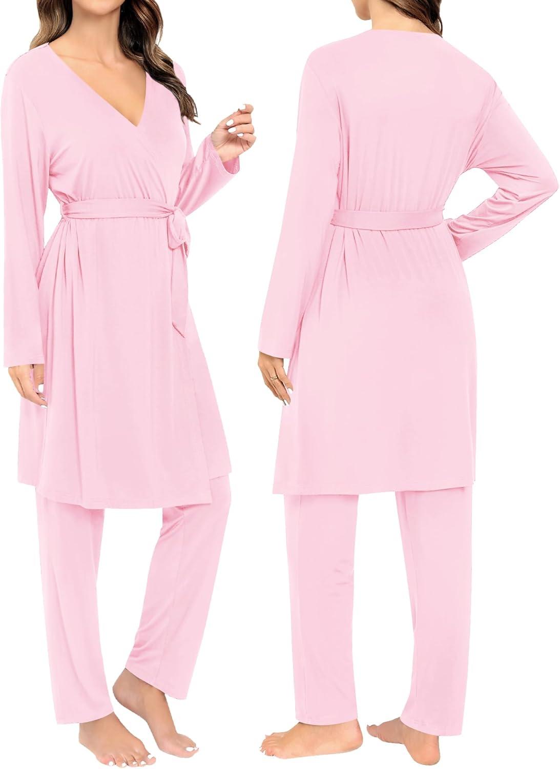 SWOMOG Maternity Nursing Robe Set 3 Piece Breastfeeding Pajamas 3 in 1 Labor Delivery Sleevless Tops&Long Pants Pregnancy Pjs(Pink)