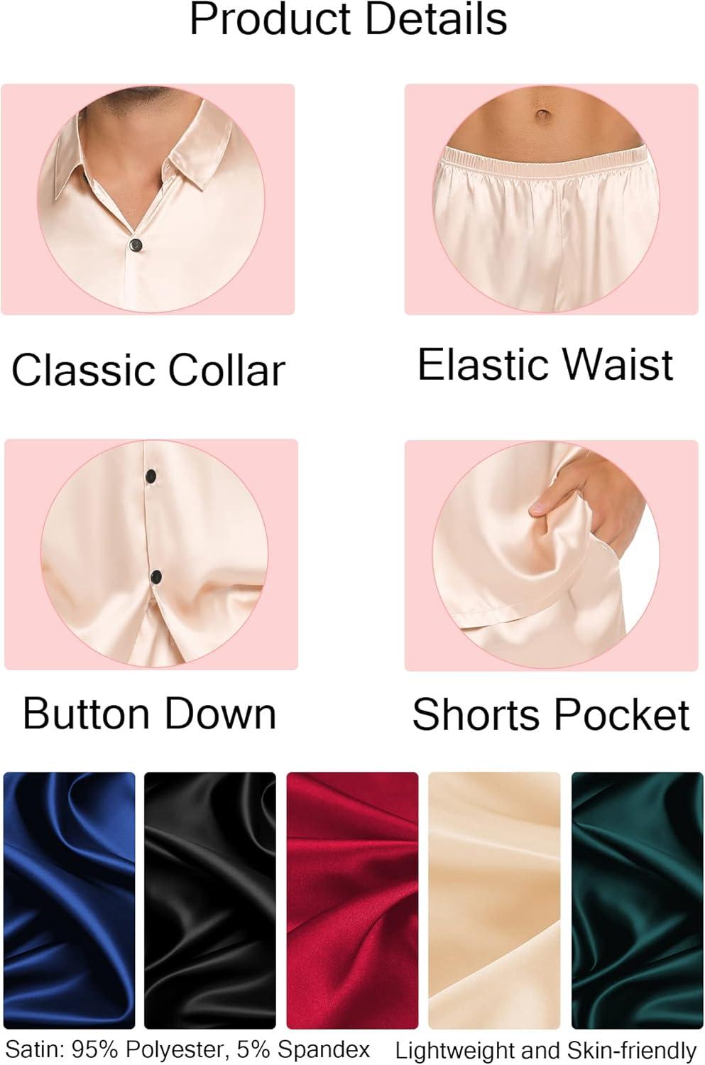 SWOMOG Men Silk Satin Pajamas Short Sleeve Pjs Set Button Down Sleepwear Soft Lounge Set Nightwear with Pockets(Deep Grey)