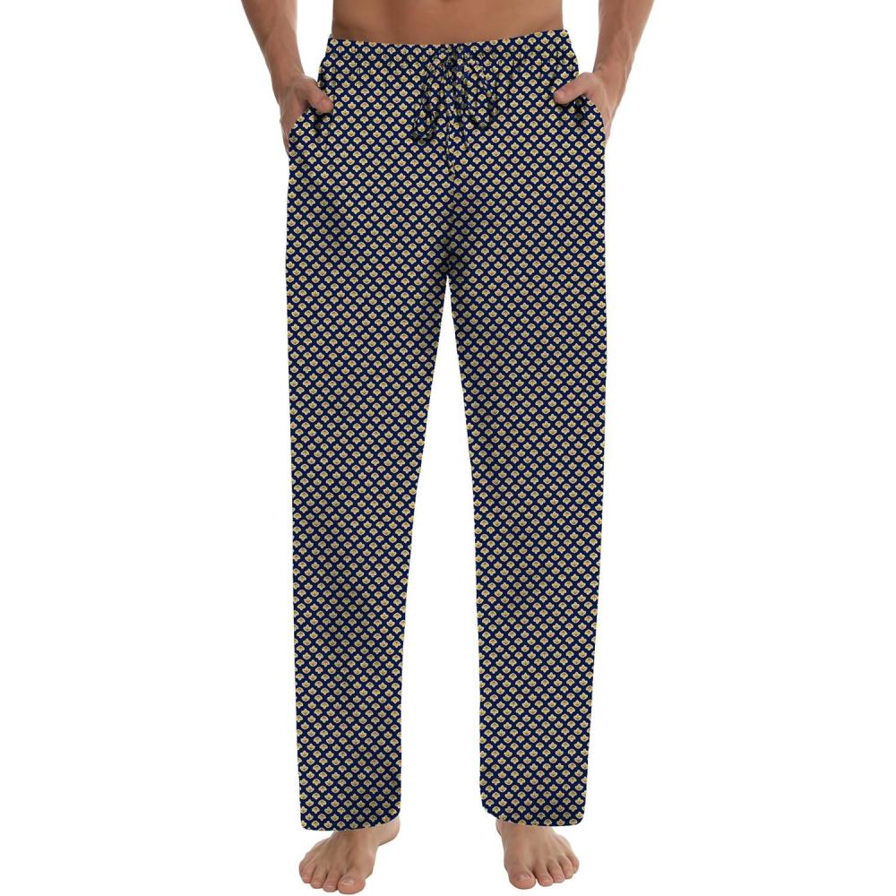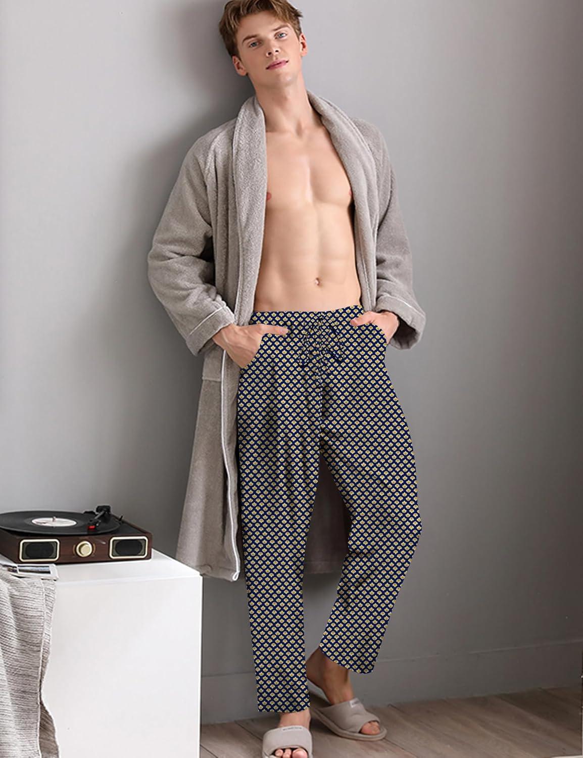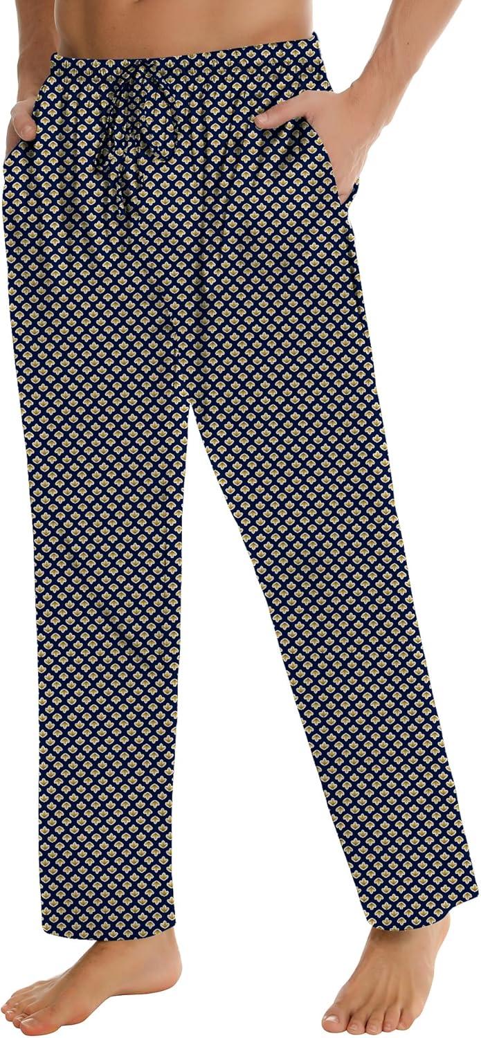 SWOMOG Men’s Satin Silk Pajama Pant Long Pj Bottoms Soft Lounge Sleep Pants with Pockets(A- Geometric Yellow)