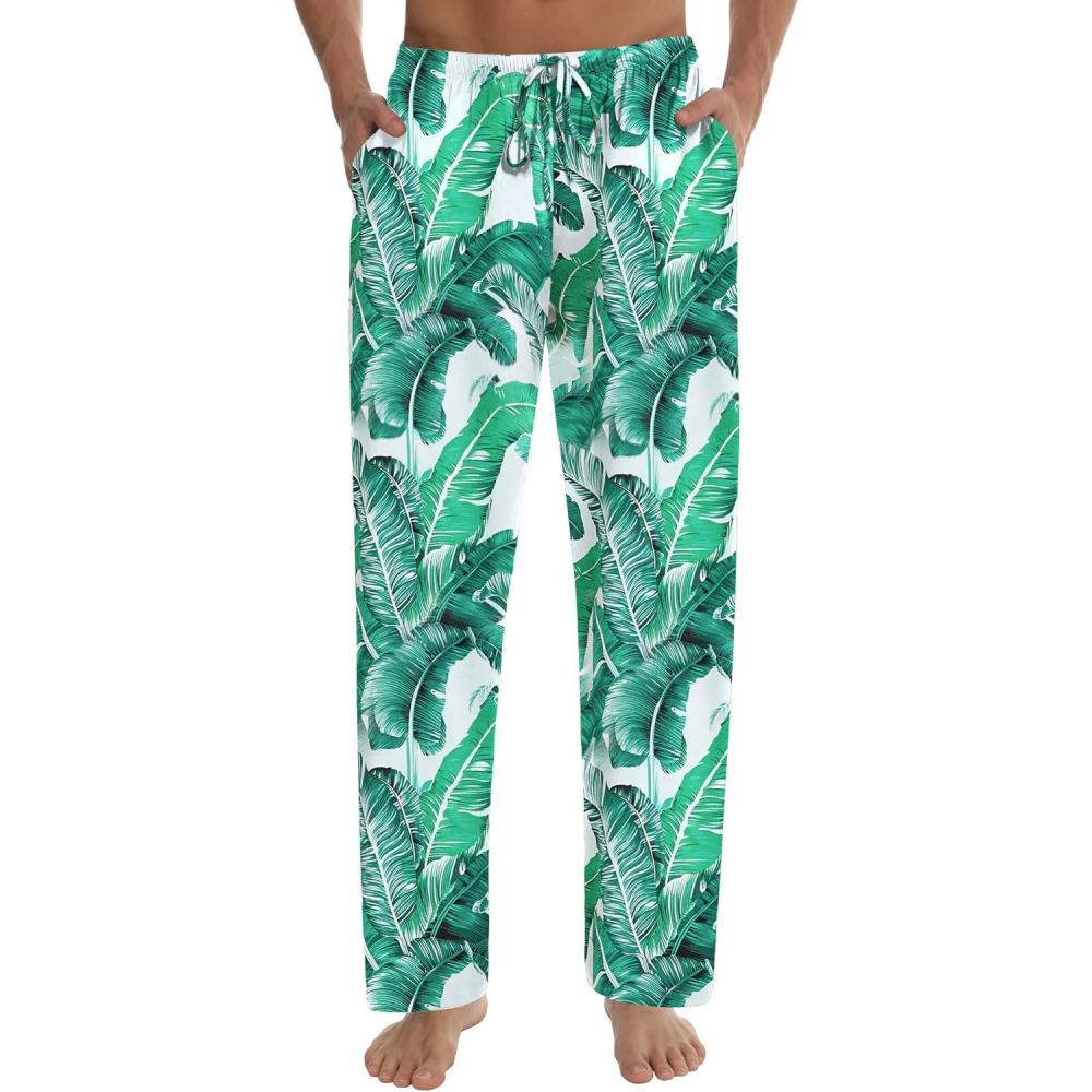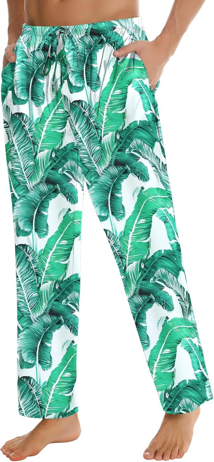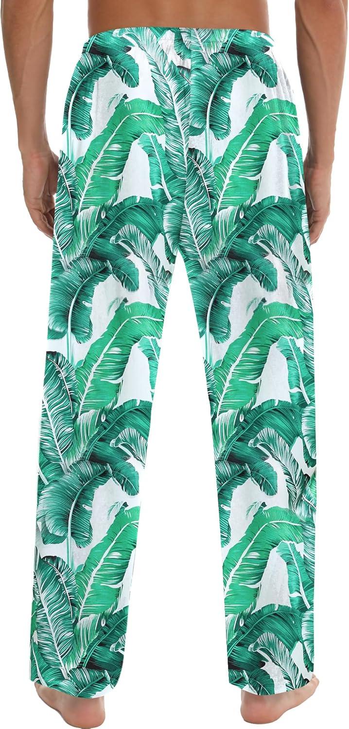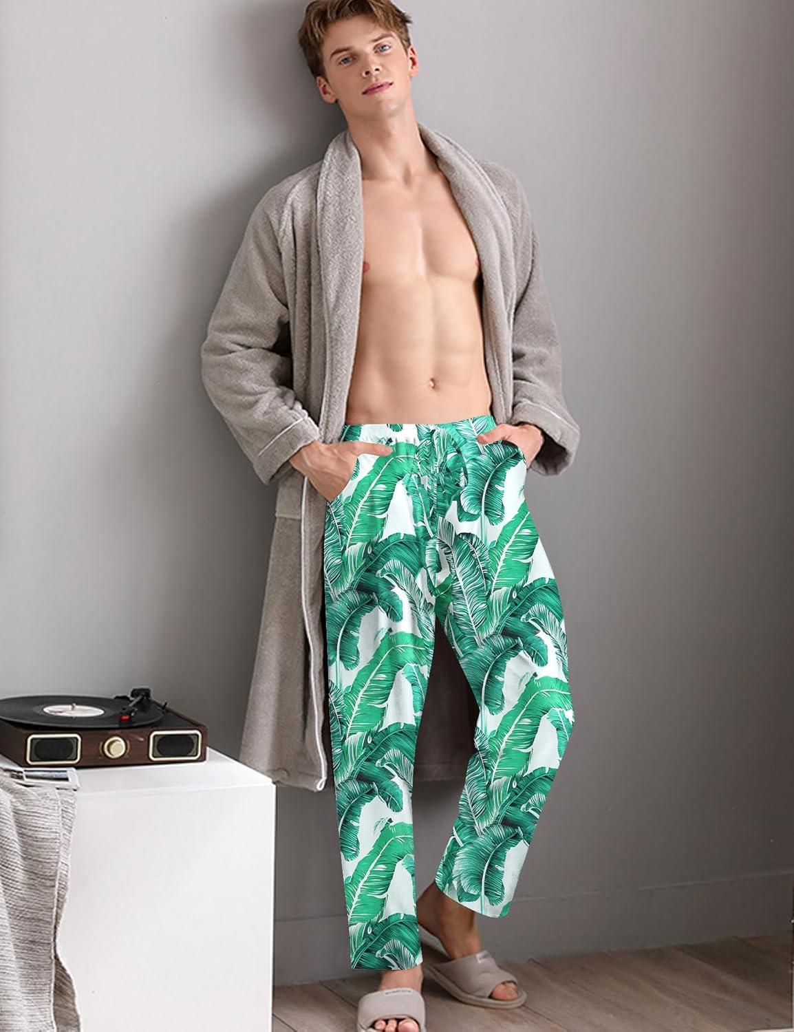 SWOMOG Men’s Satin Silk Pajama Pant Long Pj Bottoms Soft Lounge Sleep Pants with Pockets(A- White Leaves)