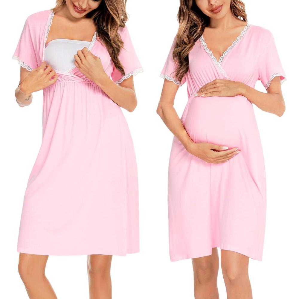 Get the SWOMOG Women 3 in 1 Delivery/Labor/Nursing Nightgown Short Sleeve Pleated Maternity Sleepwear for Breastfeeding(Pink) you want at a price you can afford with our markdown sale.