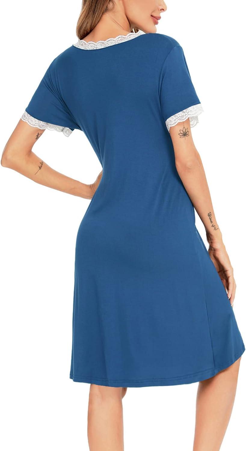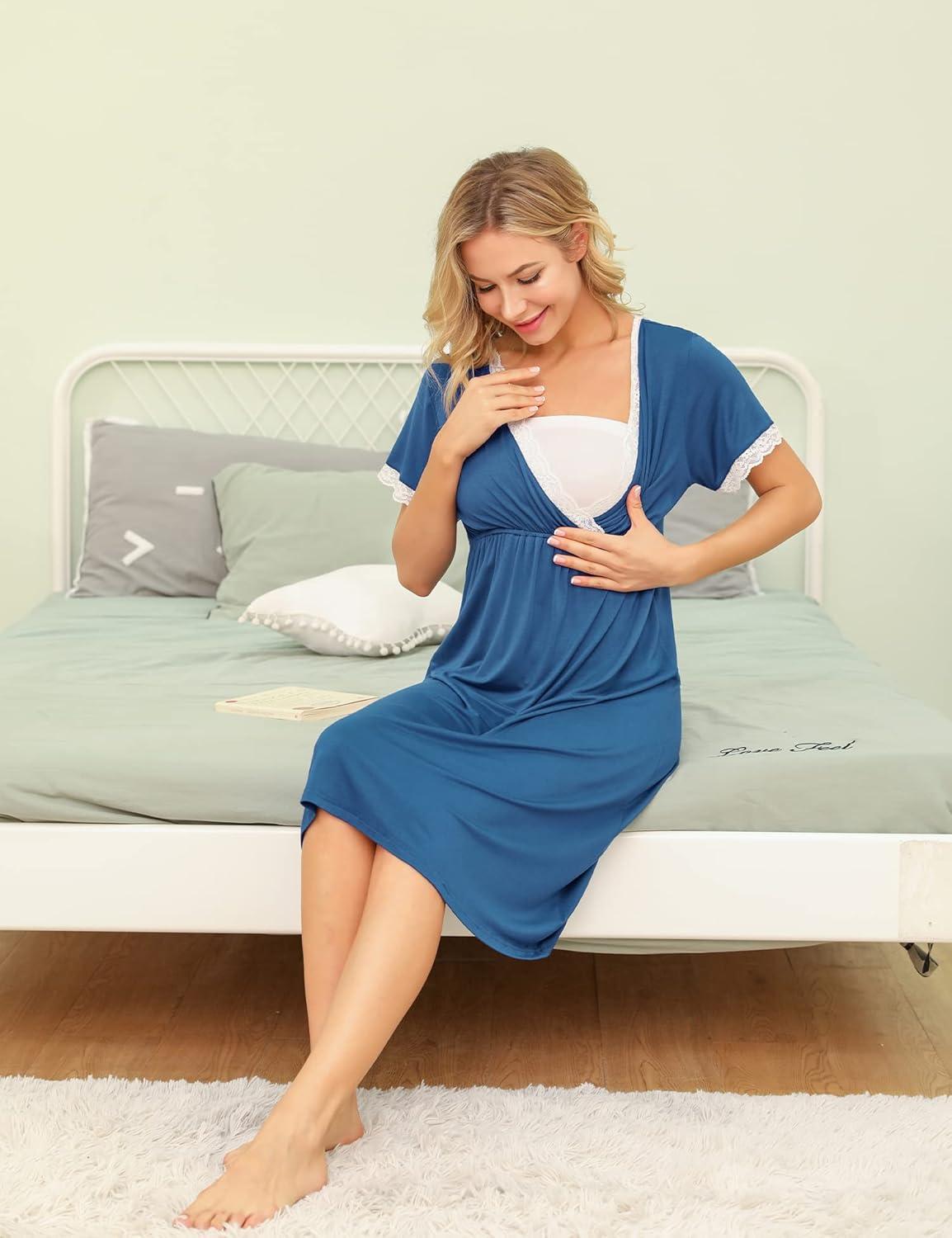 imageSWOMOG Women 3 in 1 DeliveryLaborNursing Nightgown Short Sleeve Pleated Maternity Sleepwear for BreastfeedingSleeve Short Navy