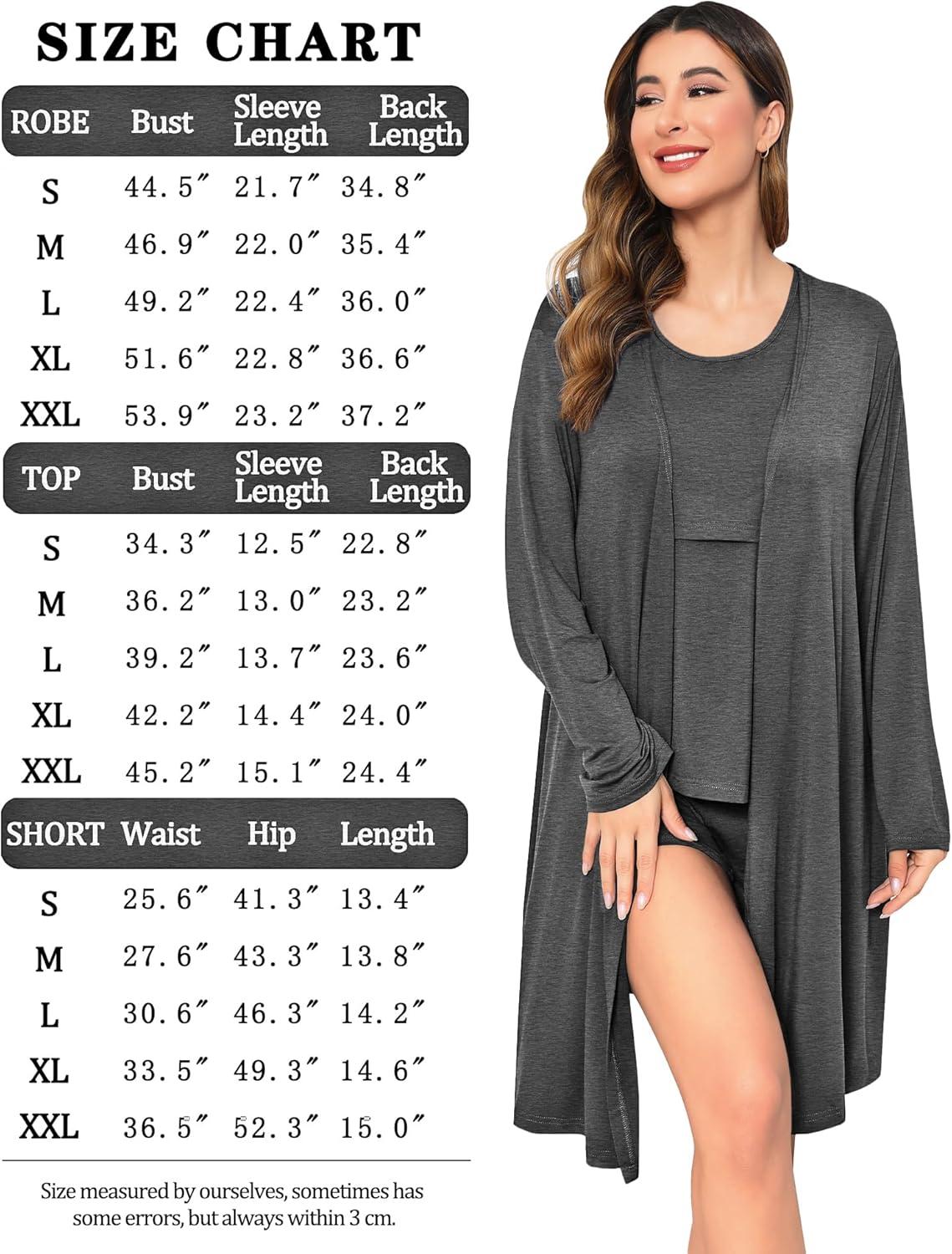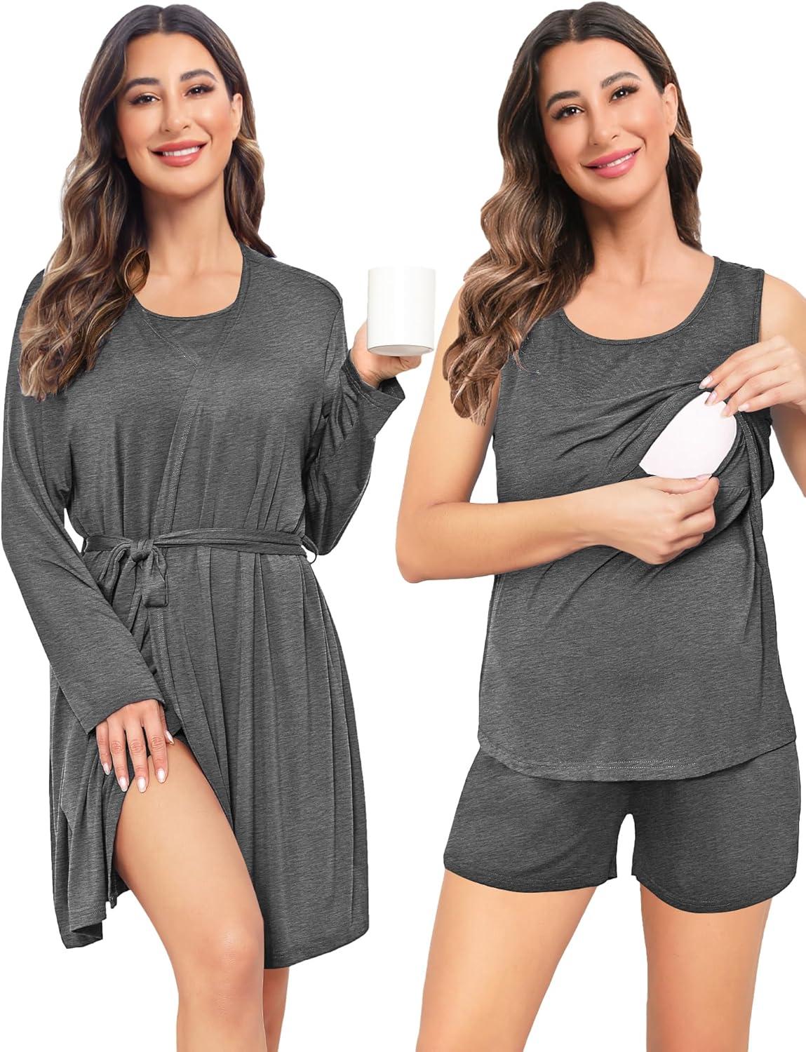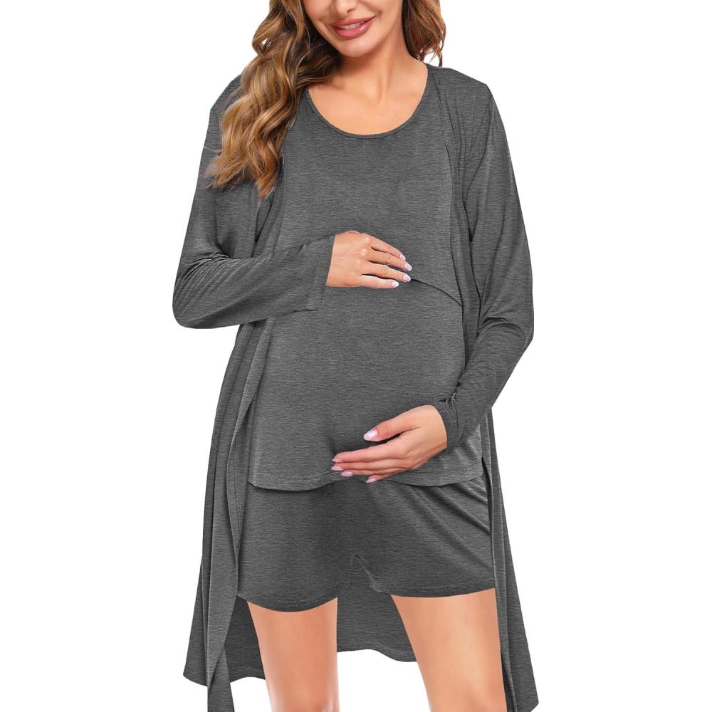 SWOMOG Women Maternity Nursing Robe Set Postpartum Pajamas 3 PCS Breastfeeding Labor Delivery Pregnancy Hospital Pjs(Deep Grey)