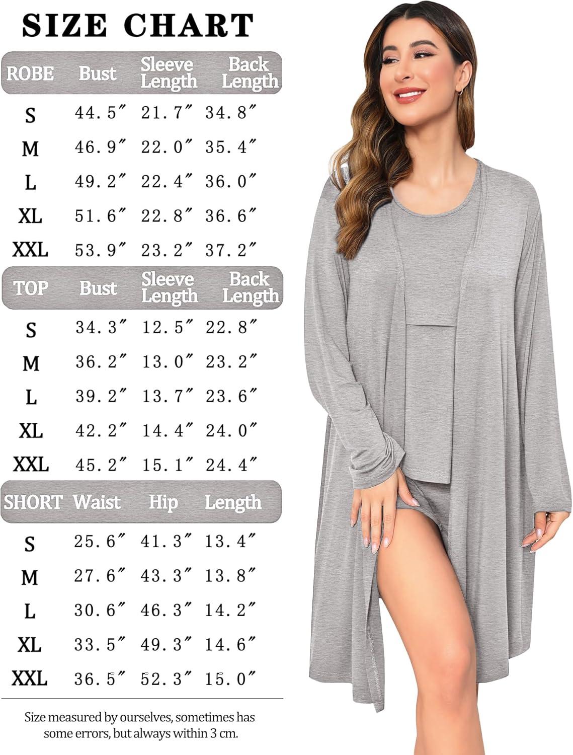 SWOMOG Women Maternity Nursing Robe Set Postpartum Pajamas 3 PCS Breastfeeding Labor Delivery Pregnancy Hospital Pjs(Deep Grey)