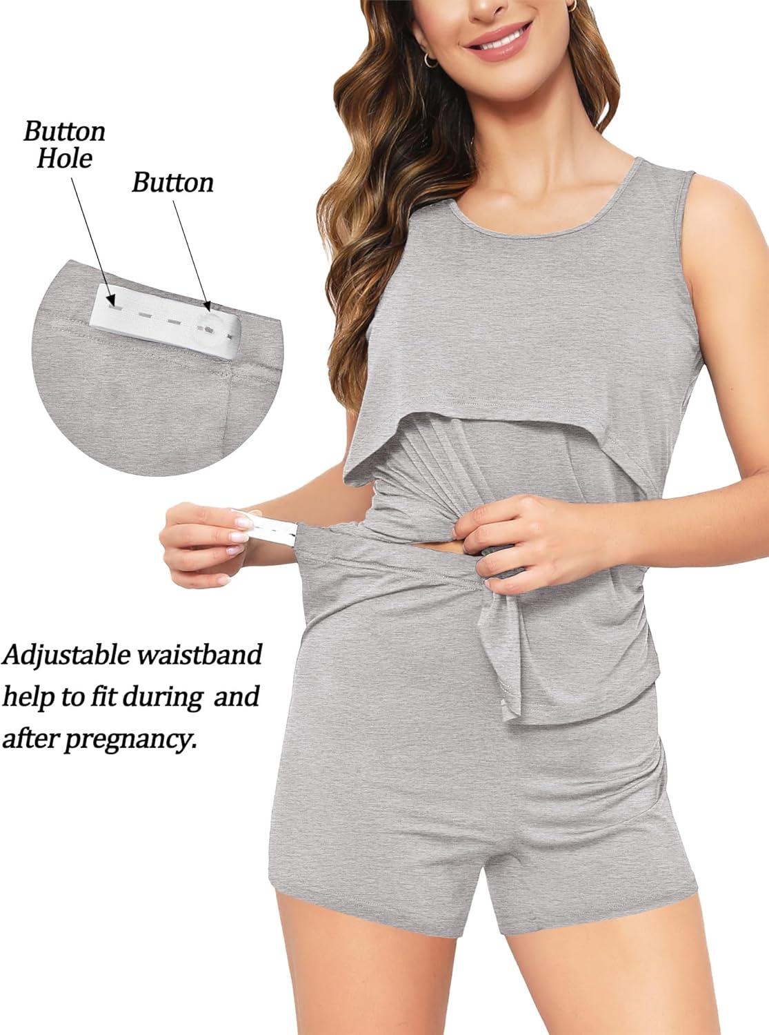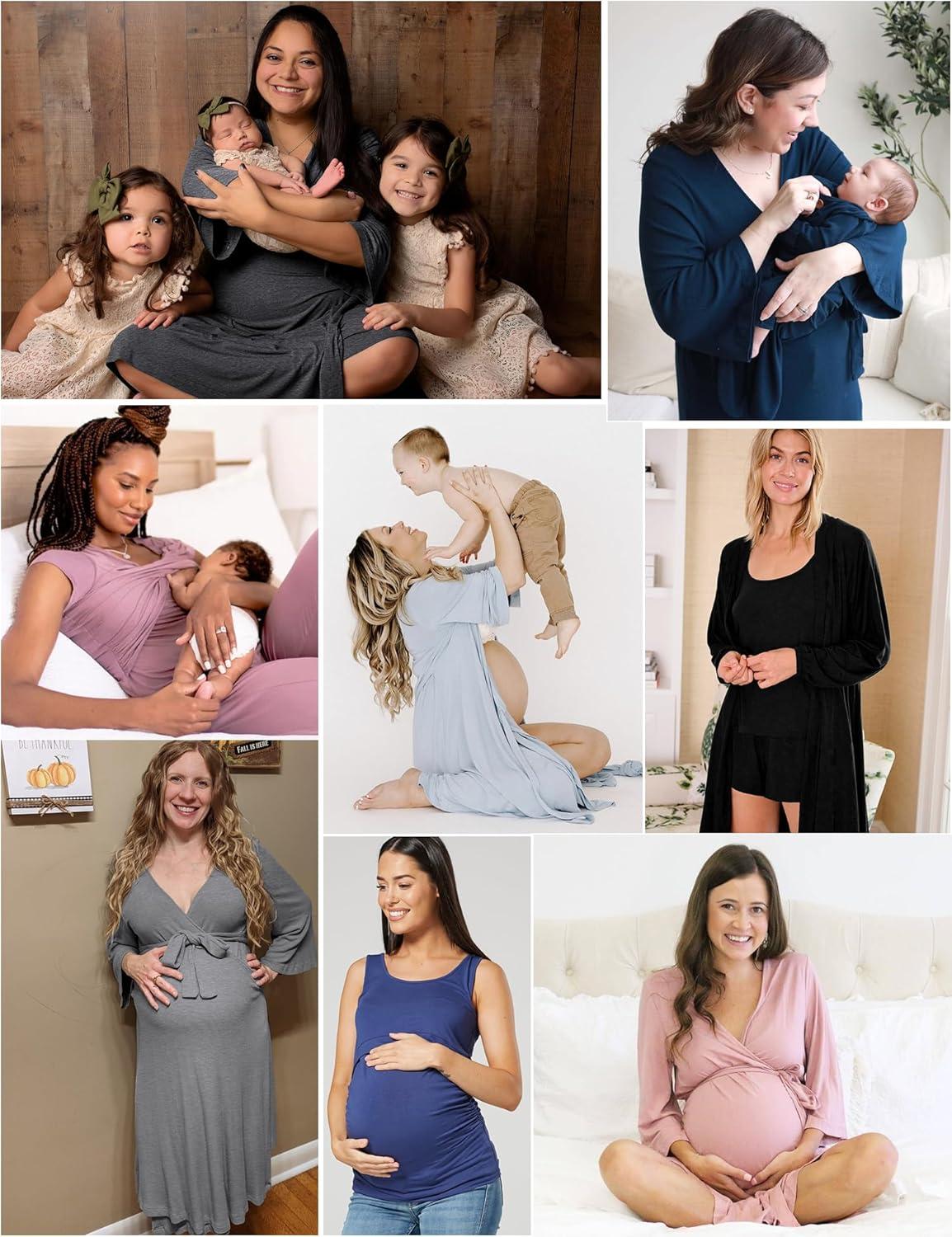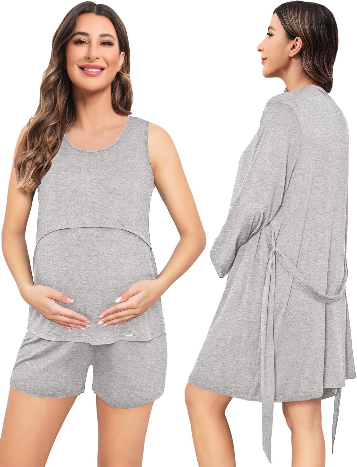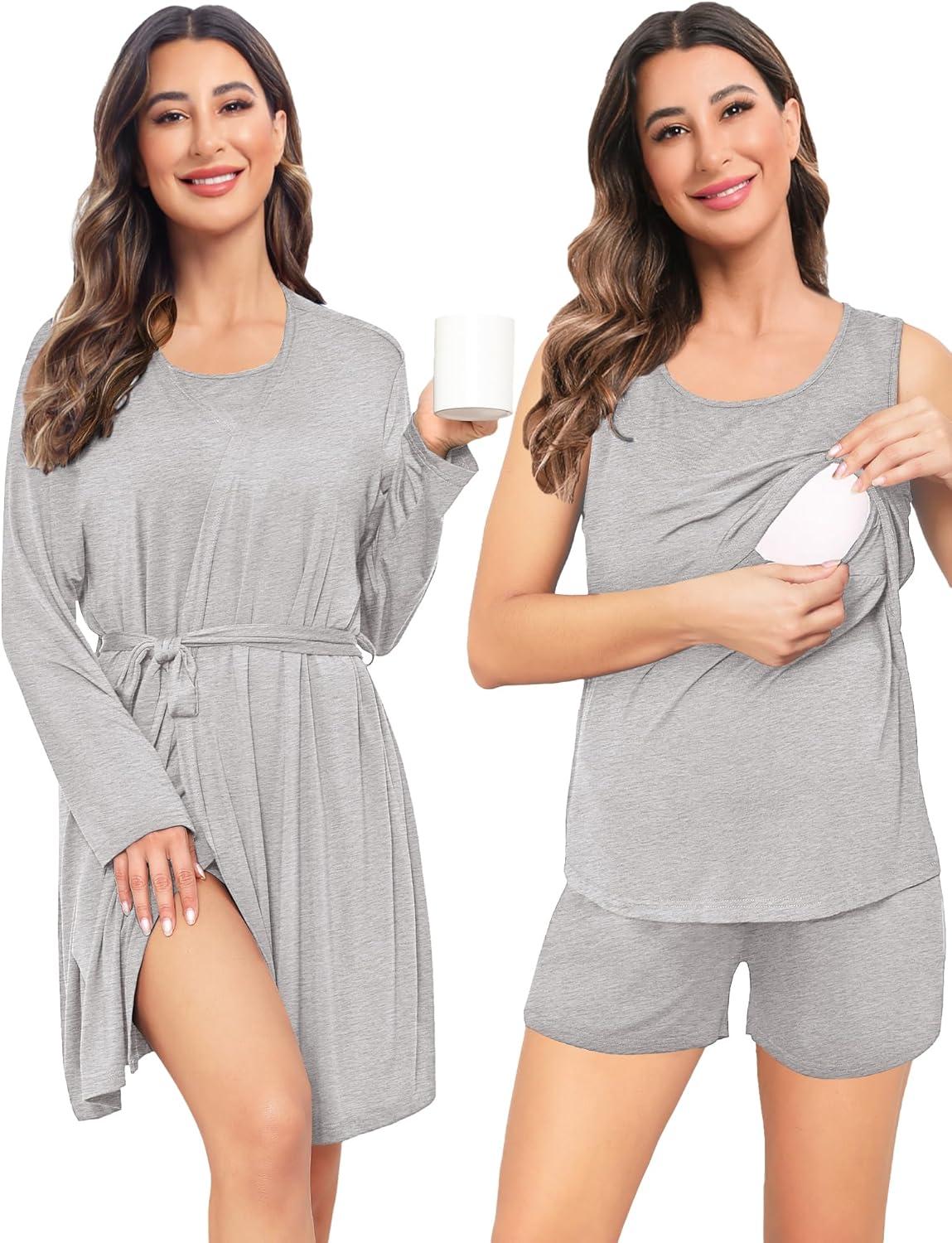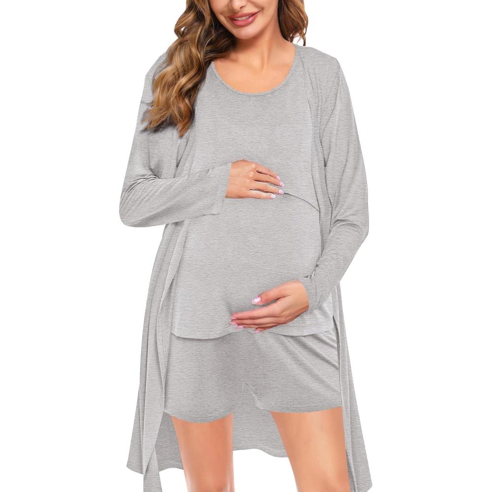 SWOMOG Women Maternity Nursing Robe Set Postpartum Pajamas 3 PCS Breastfeeding Labor Delivery Pregnancy Hospital Pjs(Grey)
