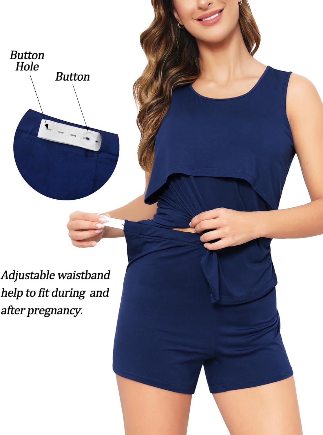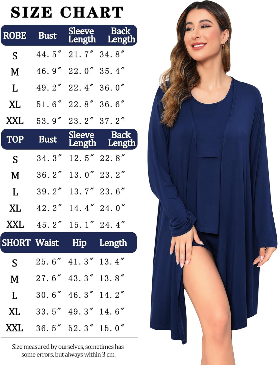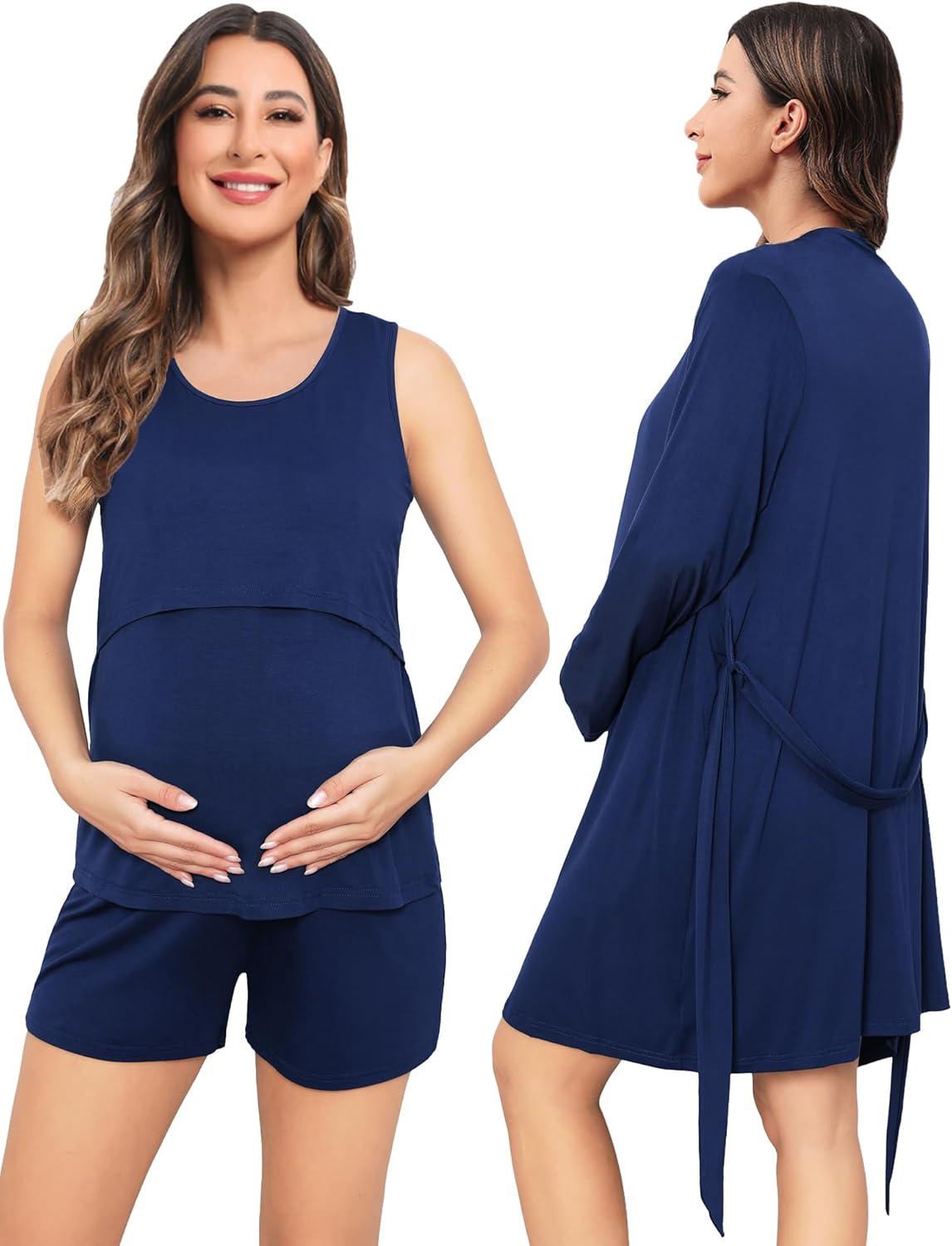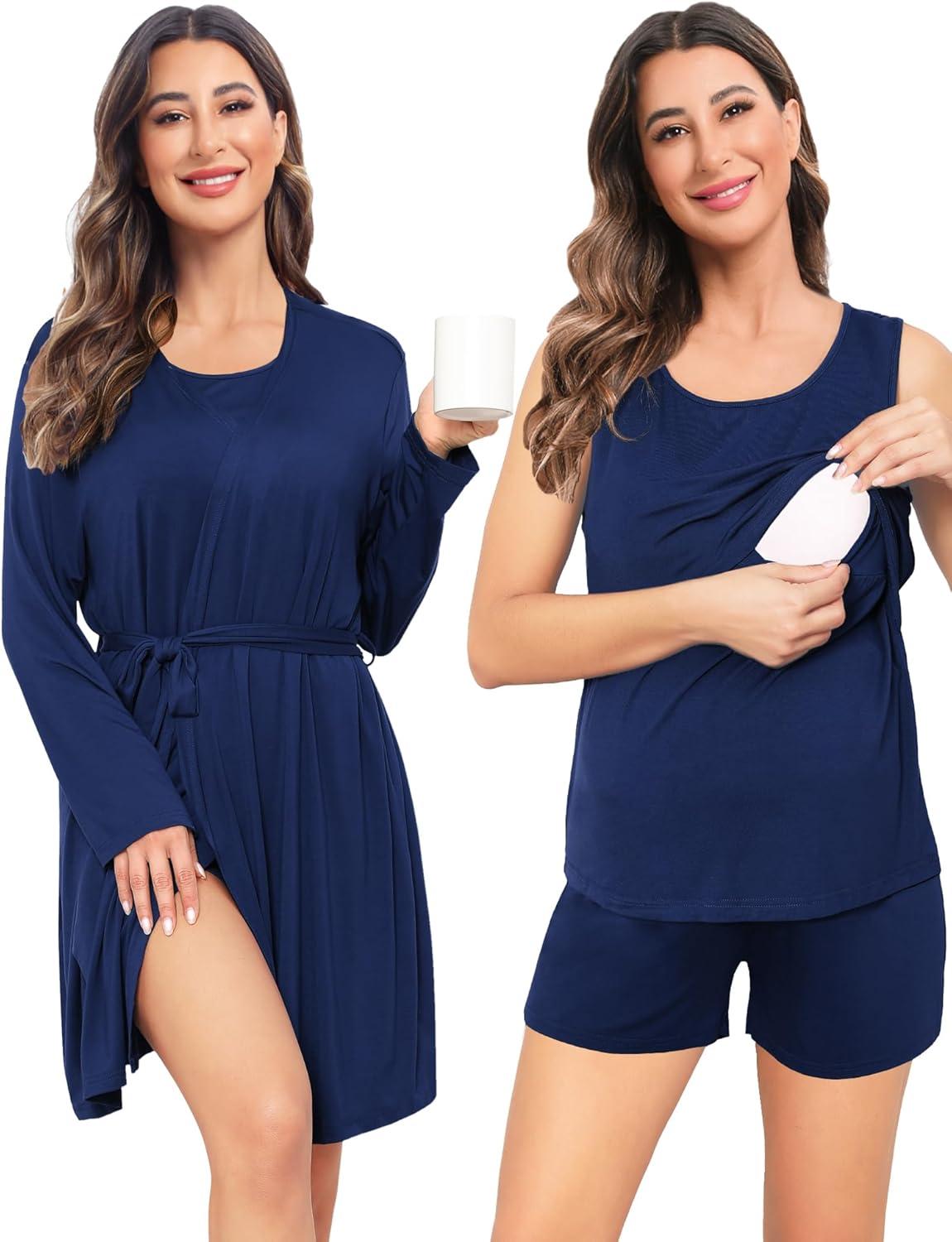 SWOMOG Women Maternity Nursing Robe Set Postpartum Pajamas 3 PCS Breastfeeding Labor Delivery Pregnancy Hospital Pjs(Navy Blue)