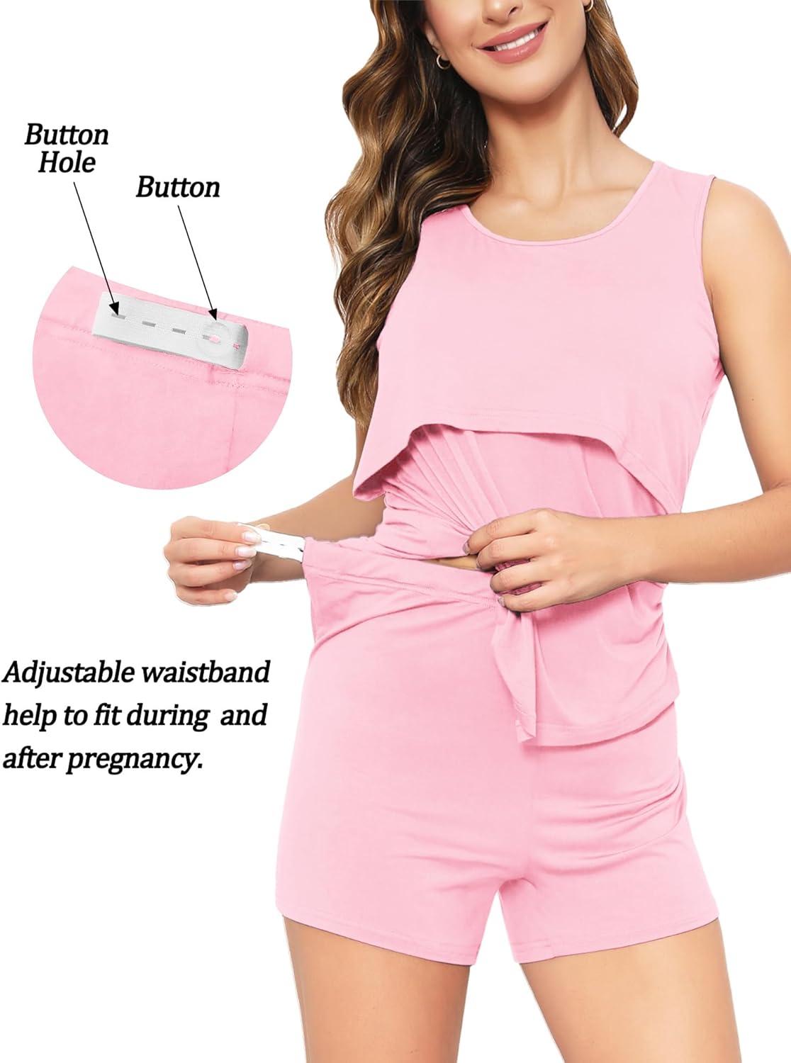 imageSWOMOG Women Maternity Nursing Robe Set Postpartum Pajamas 3 PCS Breastfeeding Labor Delivery Pregnancy Hospital PjsPink