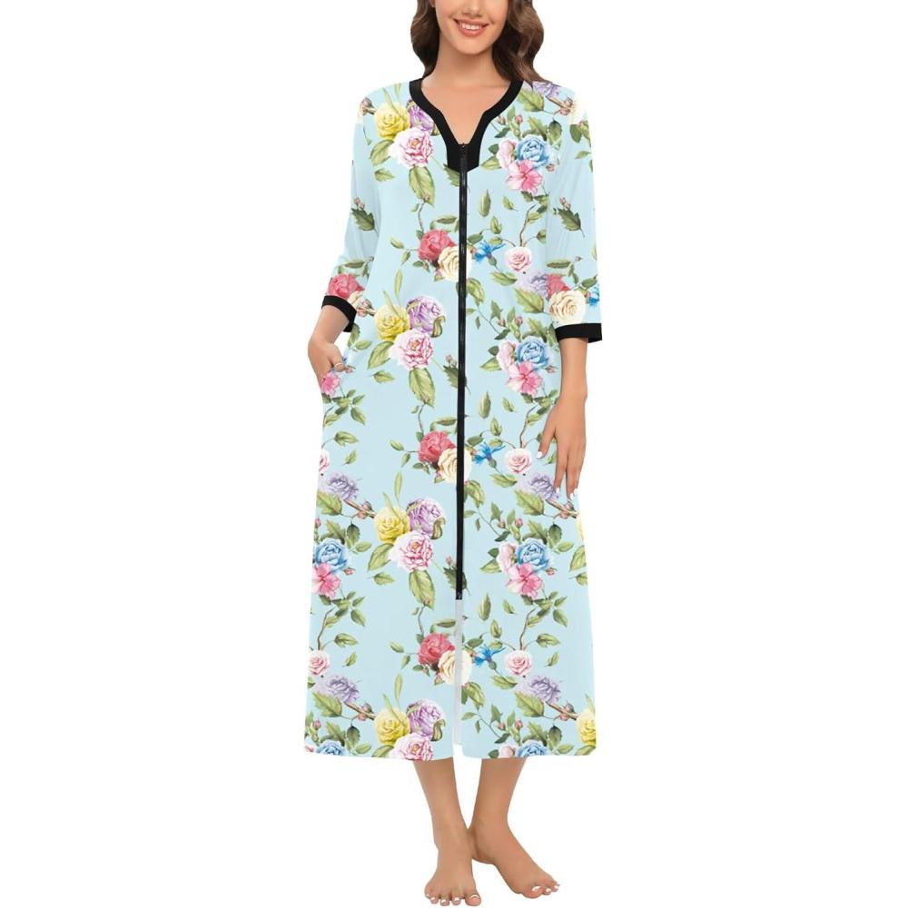 imageSWOMOG Women Zipper Robe Long Housecoat Zip Up Bathrobes Full Length Nightgown Loungewear with Pockets S3XLFloral Green
