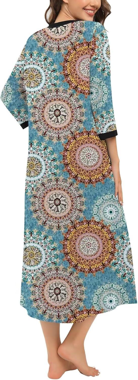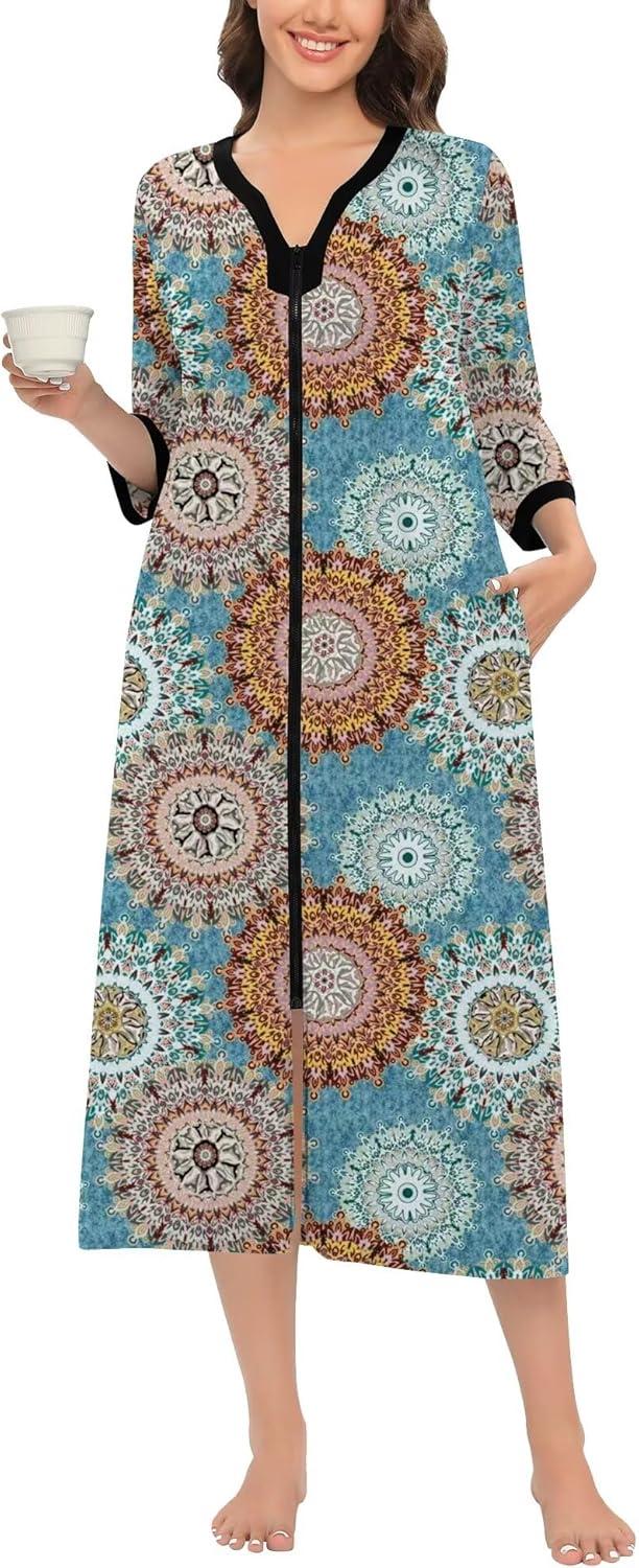 imageSWOMOG Women Zipper Robe Long Housecoat Zip Up Bathrobes Full Length Nightgown Loungewear with Pockets S3XLFloral Mandala