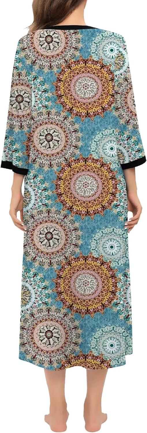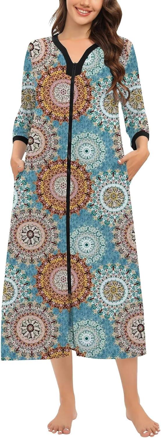 SWOMOG Women Zipper Robe Long Housecoat Zip Up Bathrobes Full Length Nightgown Loungewear with Pockets S-3XL(Floral Mandala)