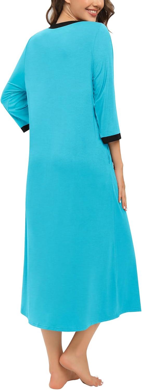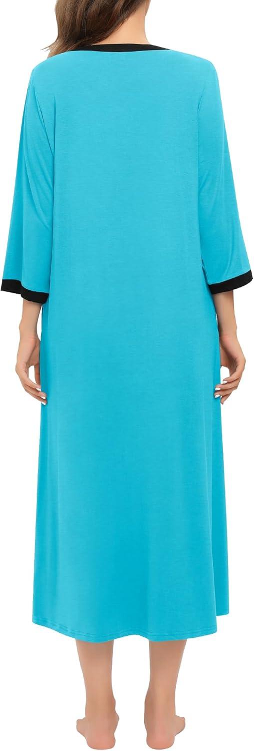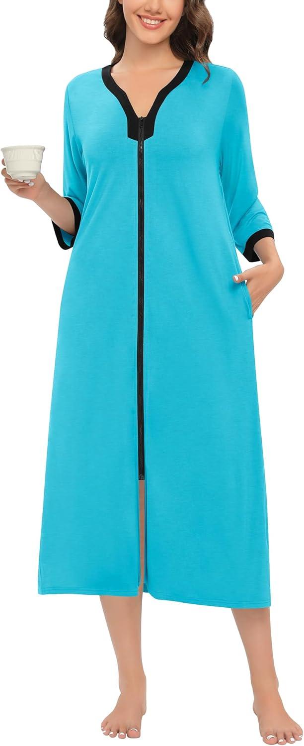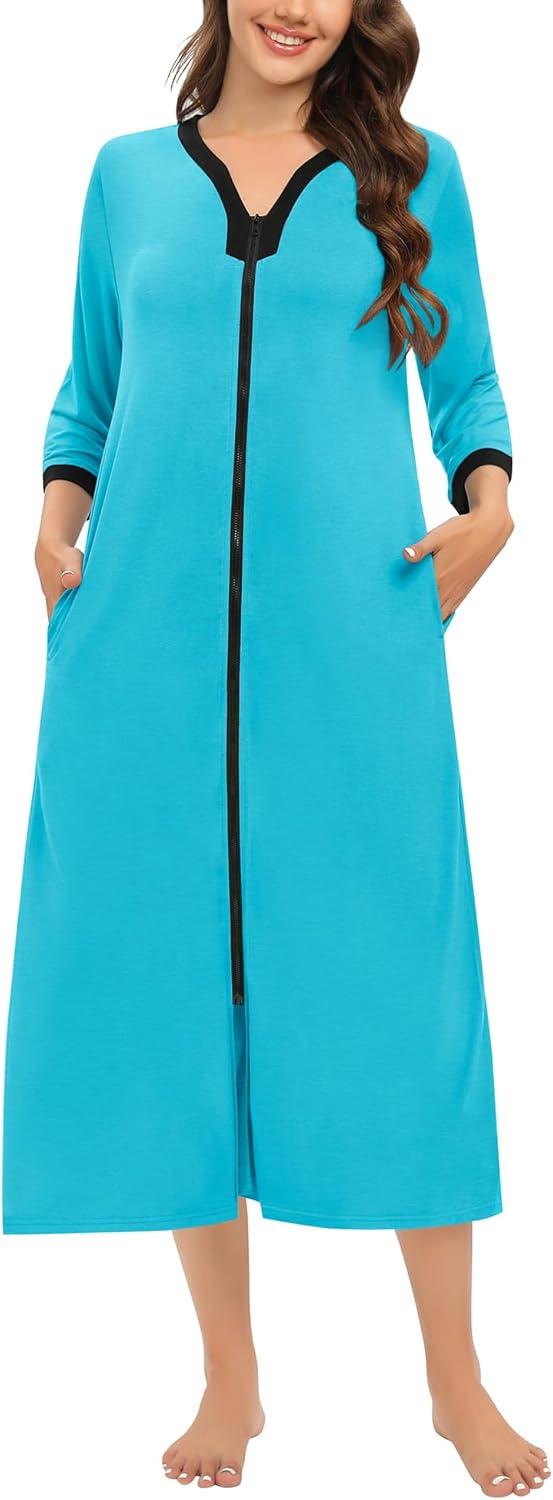 SWOMOG Women Zipper Robe Long Housecoat Zip Up Bathrobes Full Length Nightgown Loungewear with Pockets S-3XL(Peacock Blue)