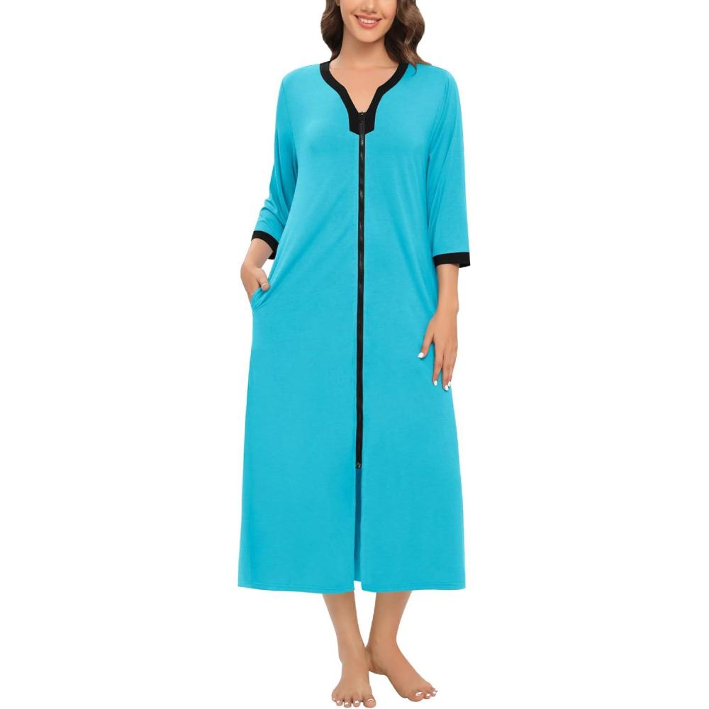 imageSWOMOG Women Zipper Robe Long Housecoat Zip Up Bathrobes Full Length Nightgown Loungewear with Pockets S3XLPeacock Blue