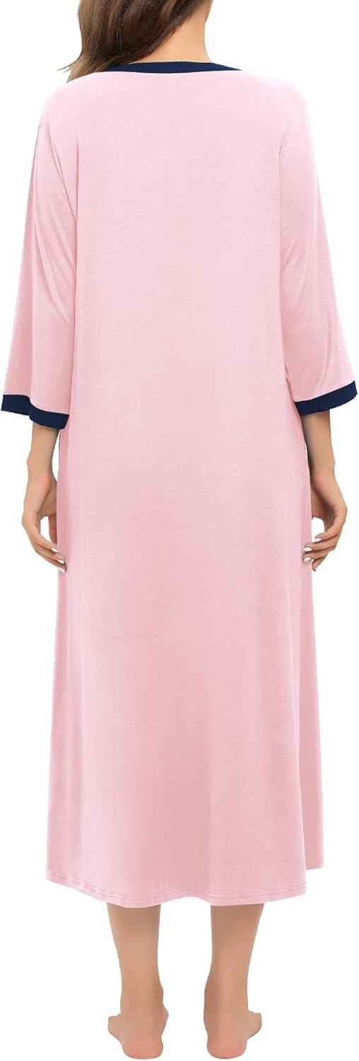 imageSWOMOG Women Zipper Robe Long Housecoat Zip Up Bathrobes Full Length Nightgown Loungewear with Pockets S3XLPink