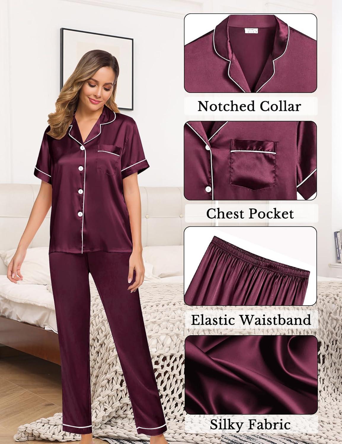 Short sleeve satin womens pajamas sets has several colors for you to choose from.