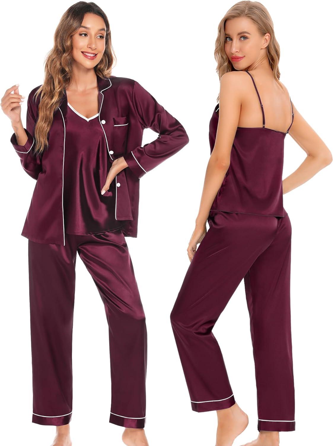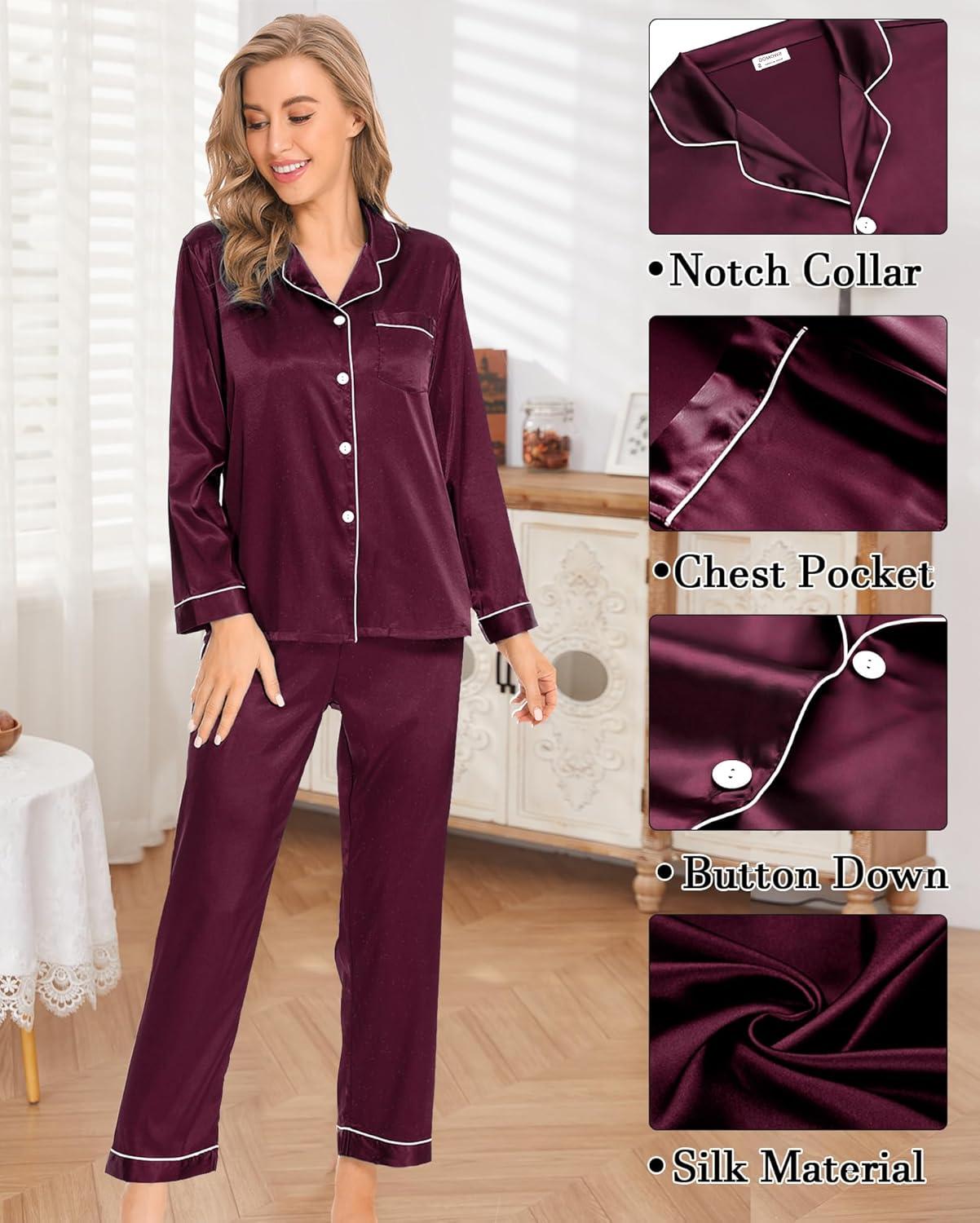 This classic pajamas set is soft, cozy and skin-friendly. The silk satin sleepwear is a great choice and gift for wife, girlfriend, sister or daughter, relaxed and casual loungewear suits make them more comfortable when sleeping.