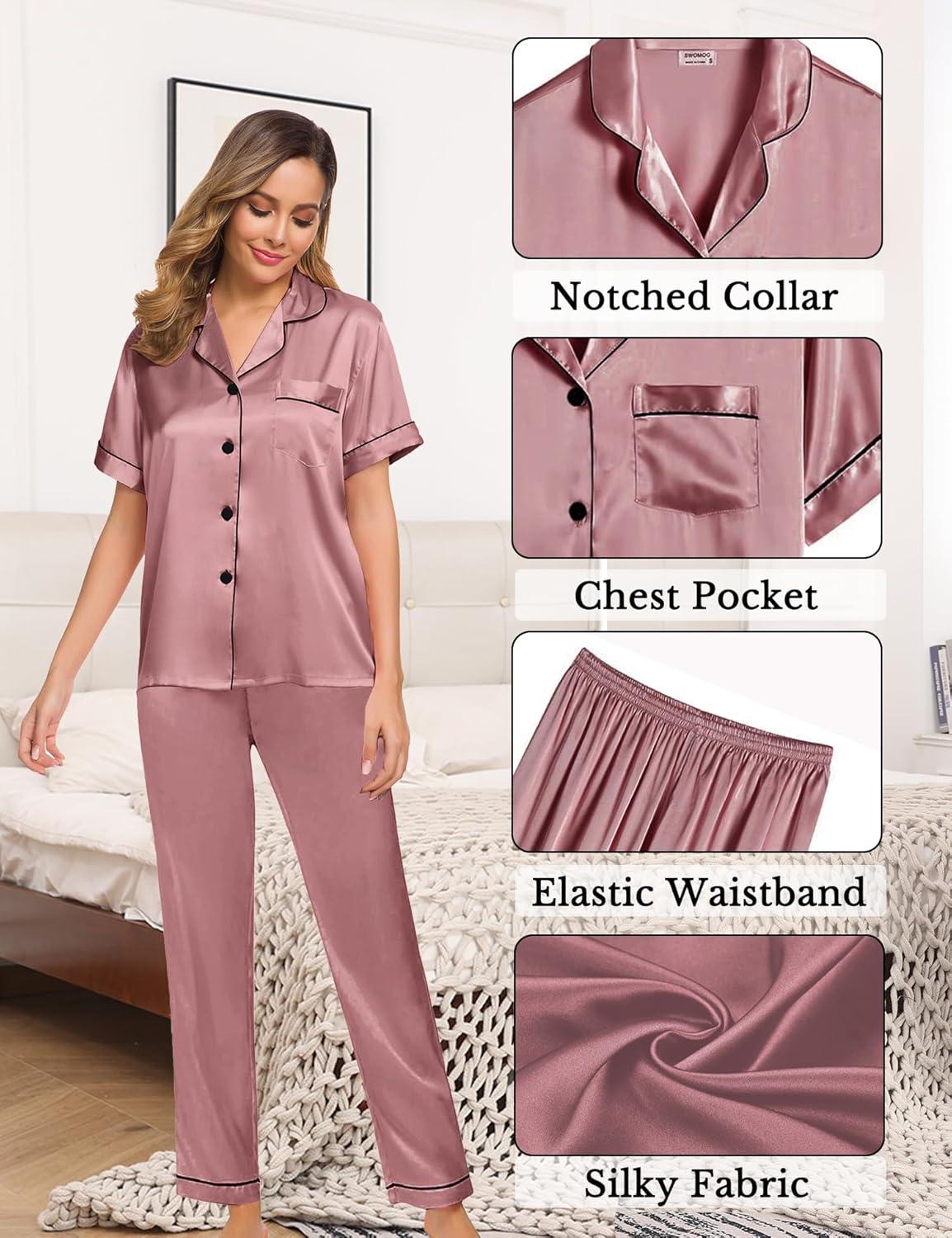 Short sleeve satin womens pajamas sets has several colors for you to choose from.
