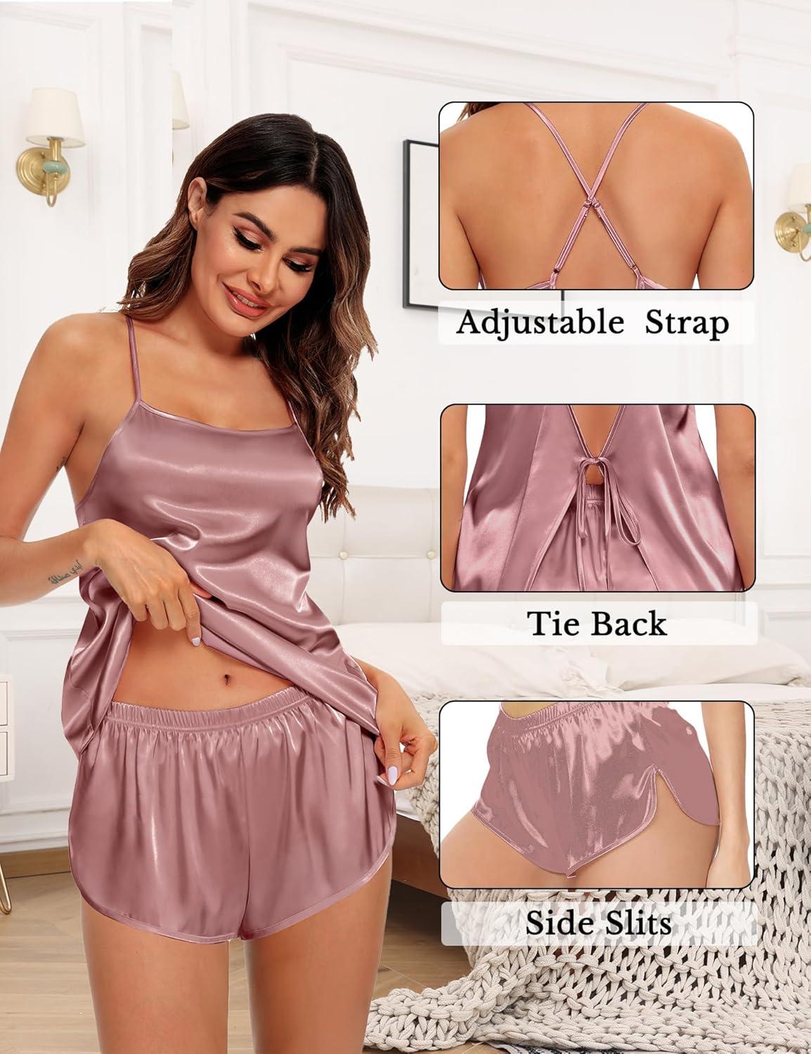 Be the first to review “SWOMOG Womens 4pcs Pajamas Sets Silk Satin Pjs Sexy Cami Shorts Set Button Down Long Short Sleeve Sleepwear Loungewear(Misty Rose)”