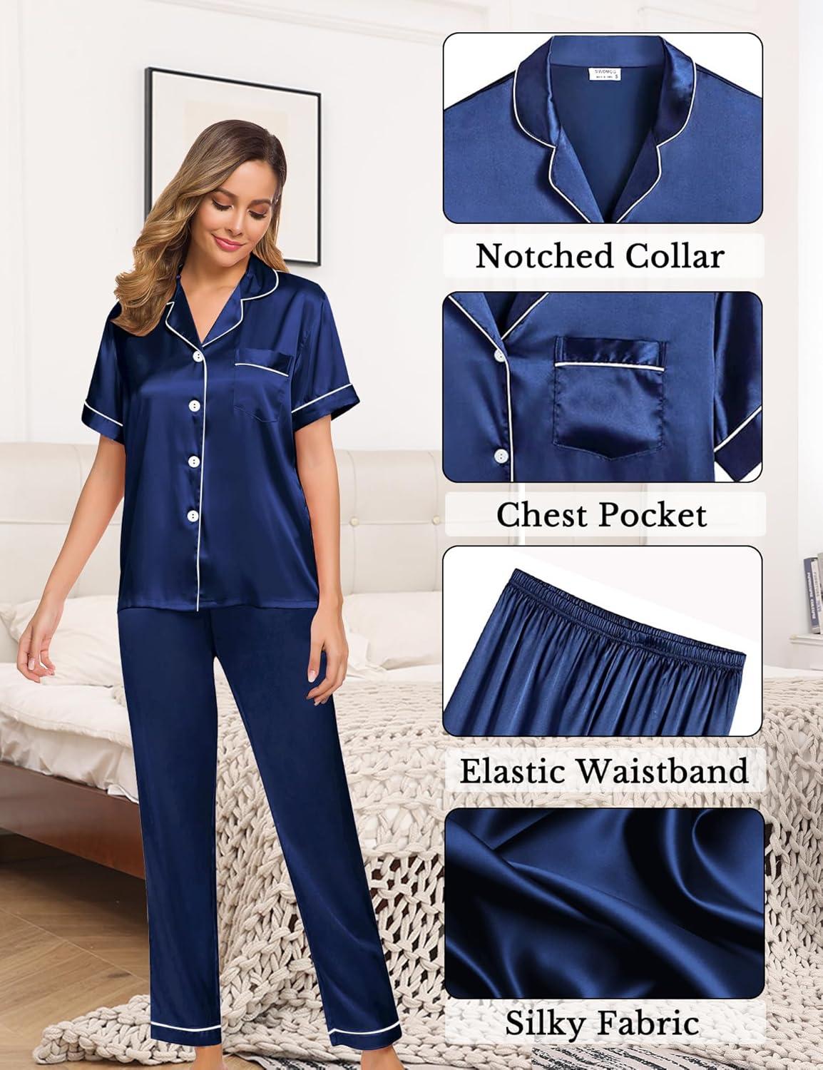 Short sleeve satin womens pajamas sets has several colors for you to choose from.
