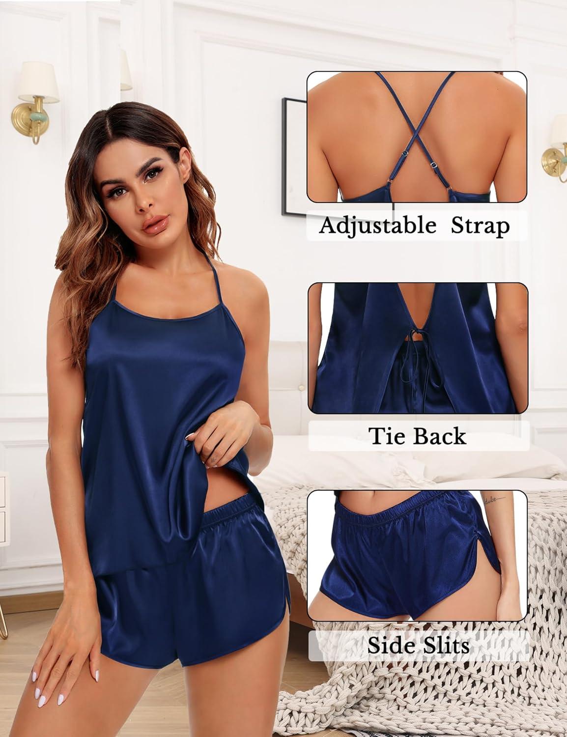 Be the first to review “SWOMOG Womens 4pcs Pajamas Sets Silk Satin Pjs Sexy Cami Shorts Set Button Down Long Short Sleeve Sleepwear Loungewear(Navy Blue)”
