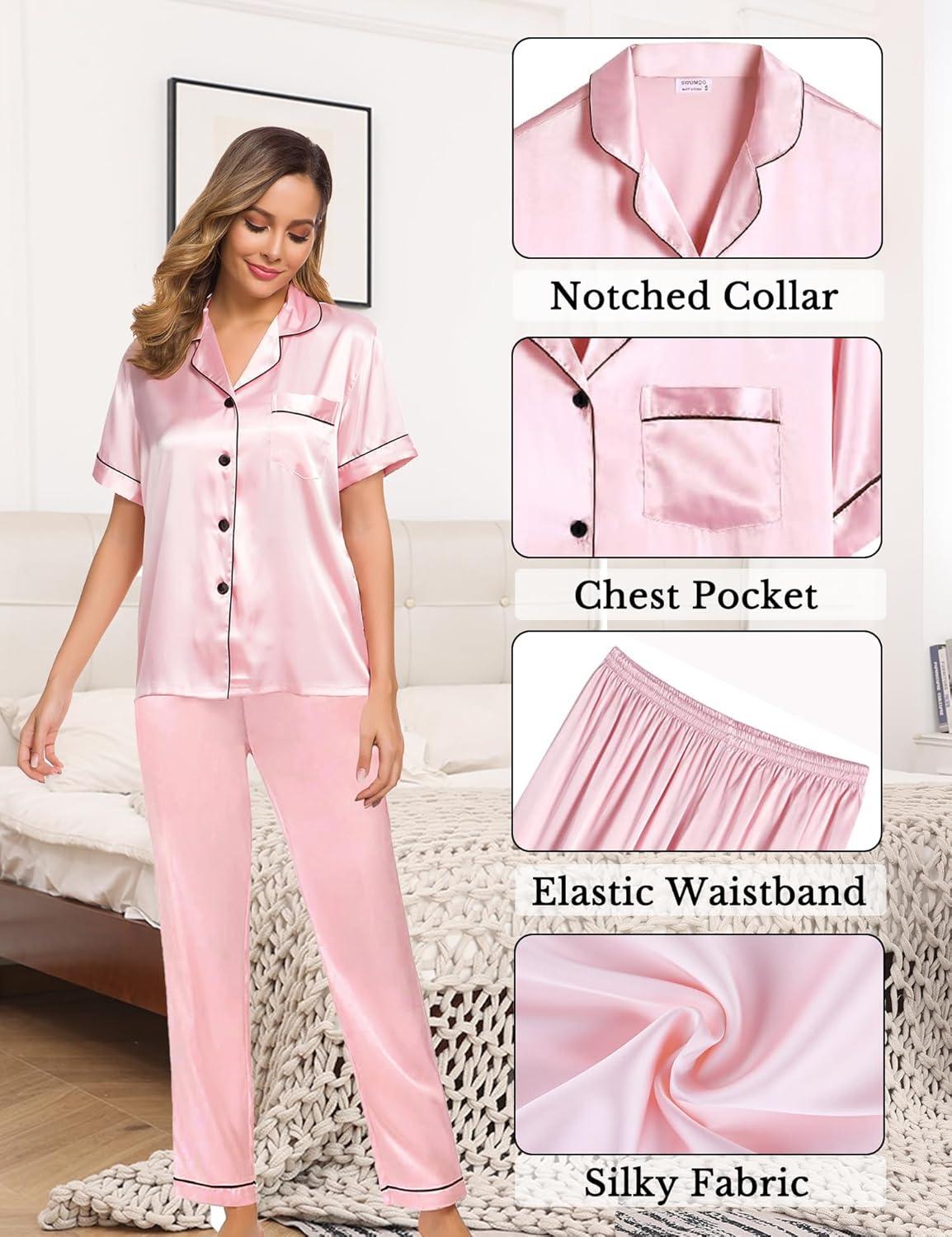 Short sleeve satin womens pajamas sets has several colors for you to choose from.