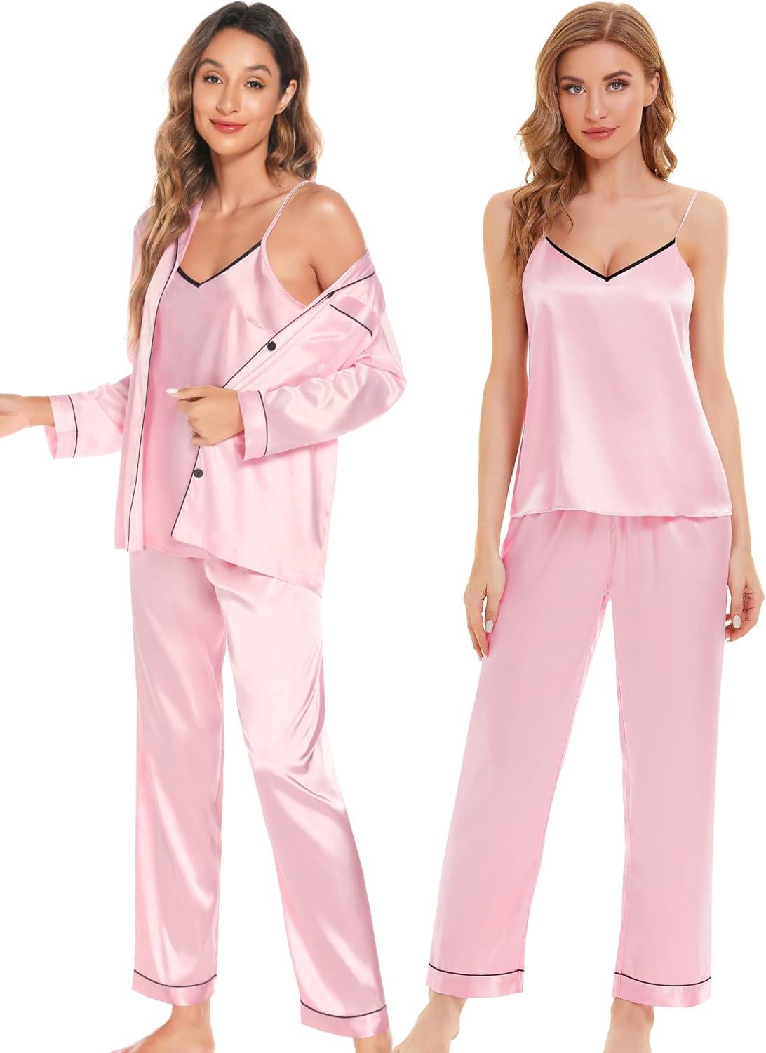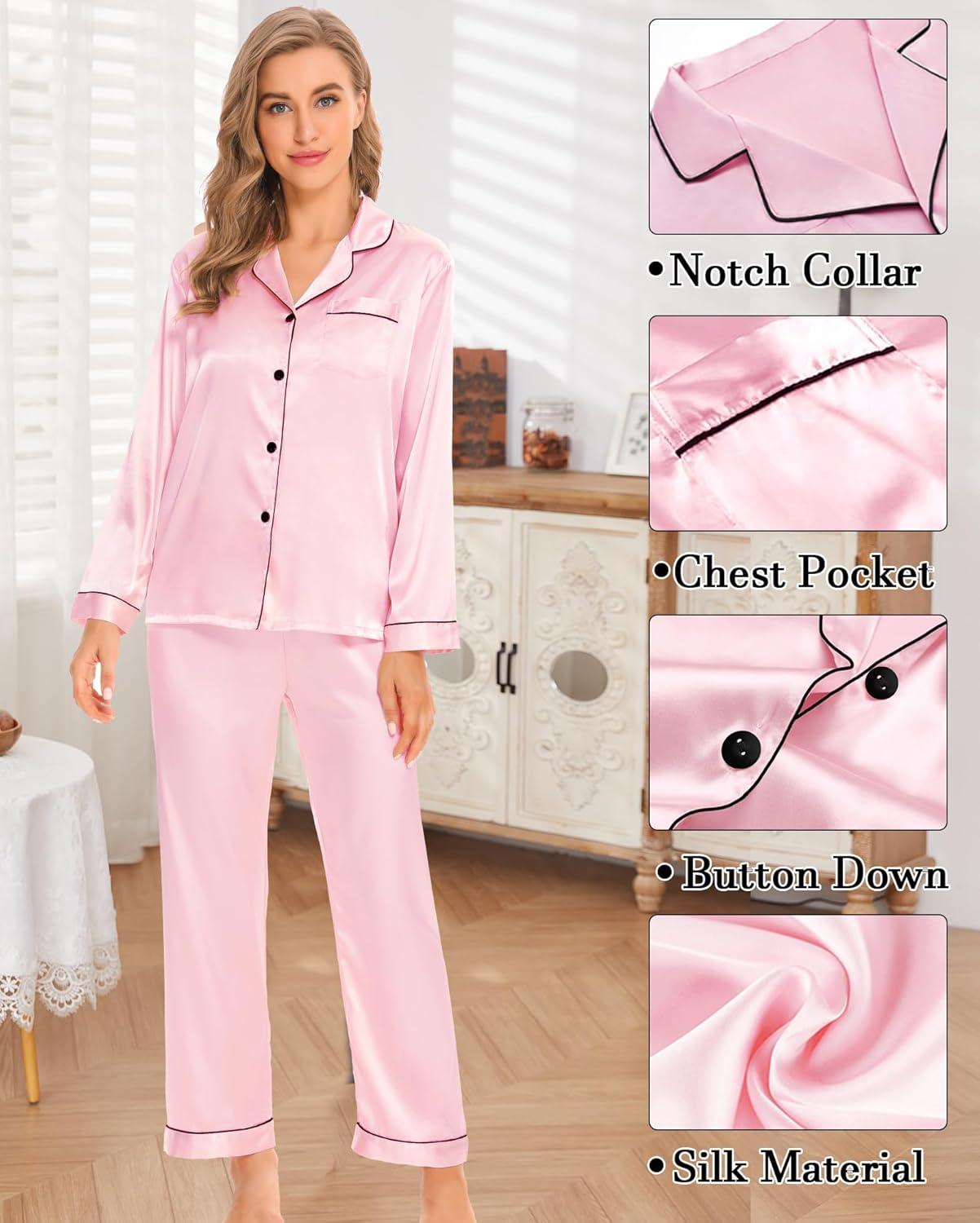 This classic pajamas set is soft, cozy and skin-friendly. The silk satin sleepwear is a great choice and gift for wife, girlfriend, sister or daughter, relaxed and casual loungewear suits make them more comfortable when sleeping.