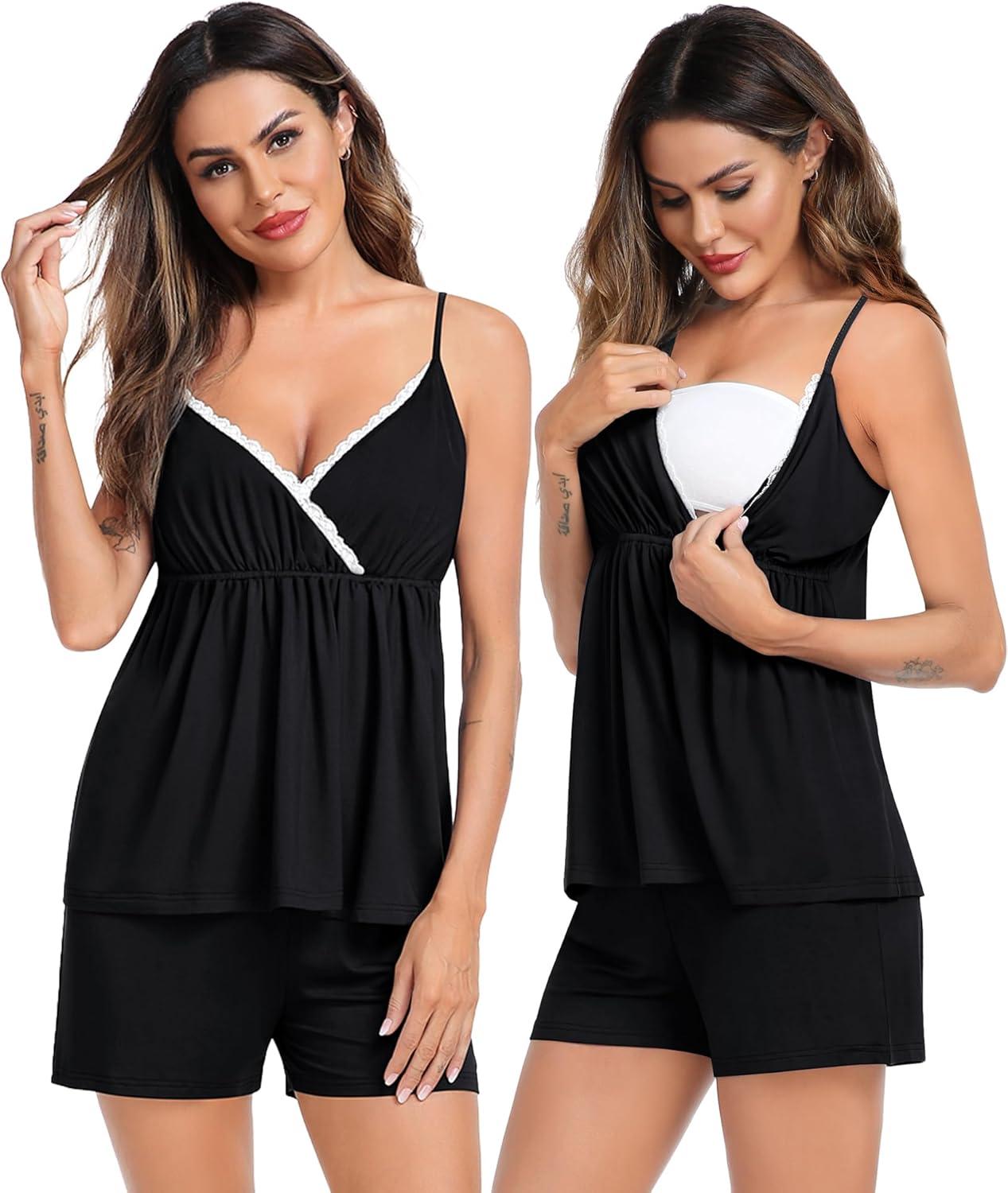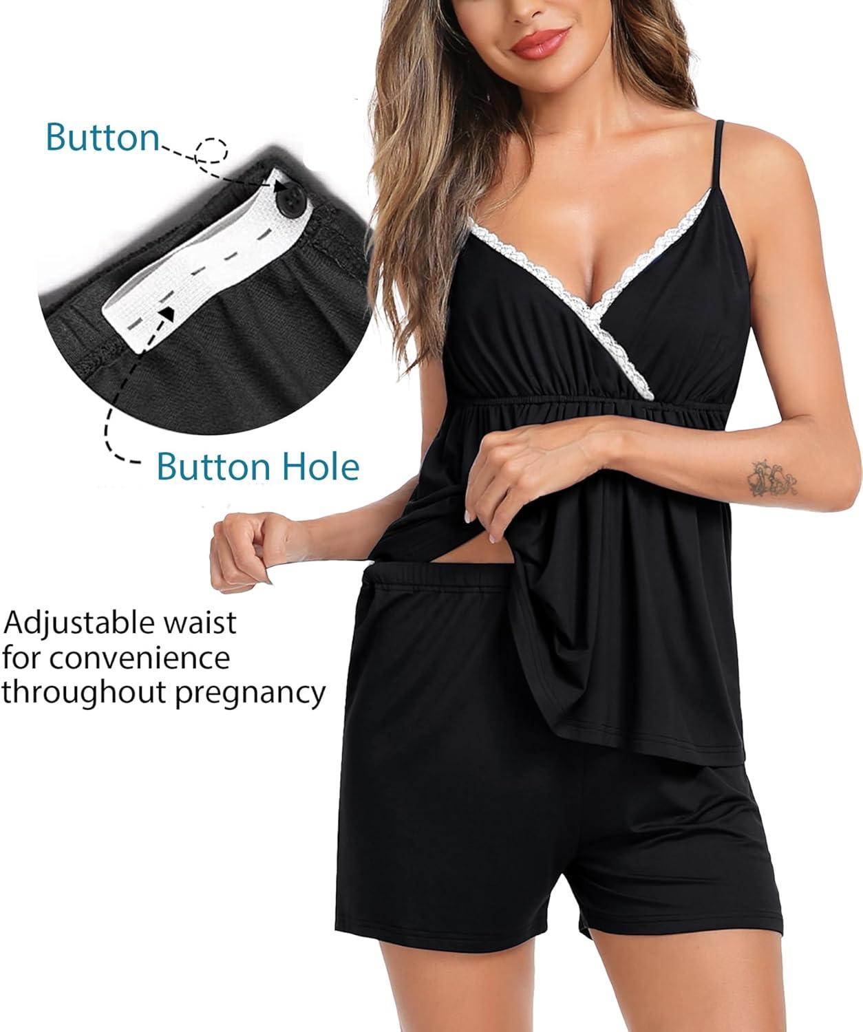 imageSWOMOG Womens Maternity Robe Set 3 Piece Nursing Pajamas for Breastfeeding 3 in 1 Labor Delivery Hospital Pregnancy Pjs GreyBlack