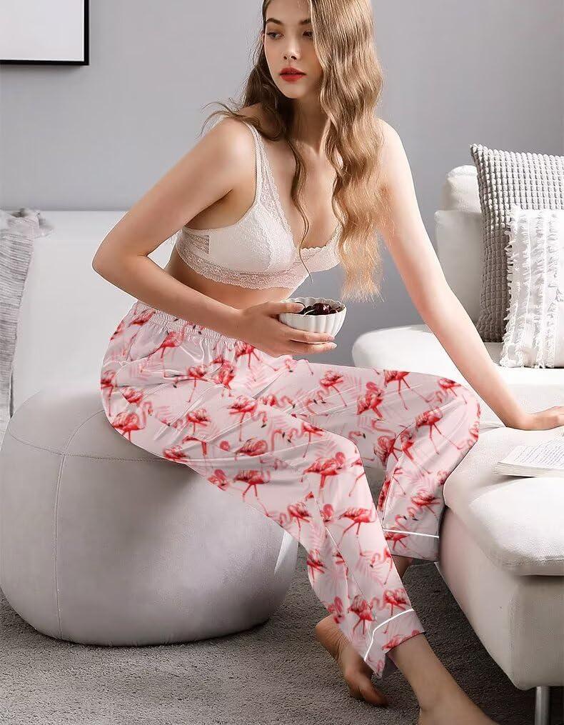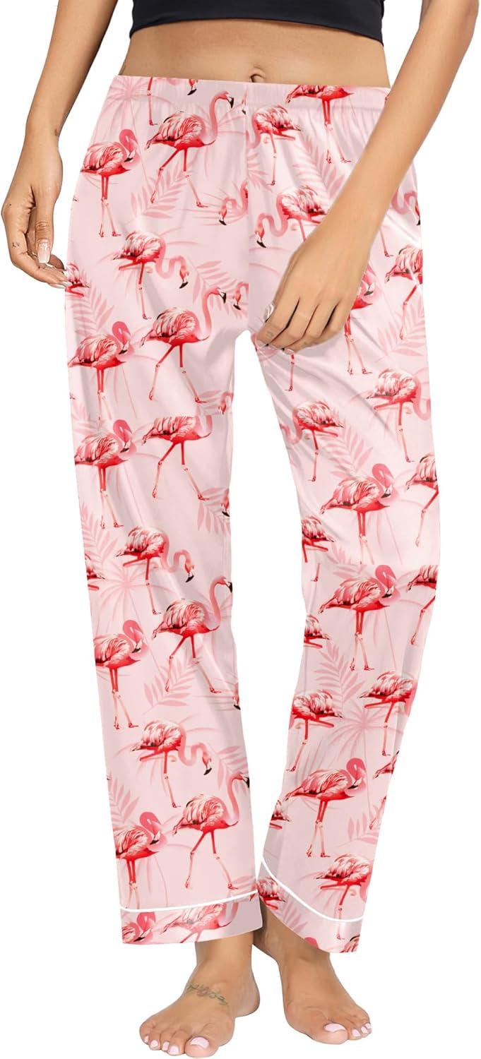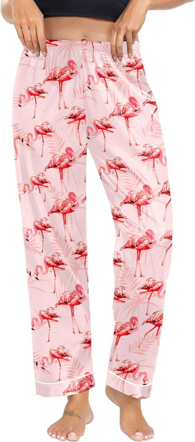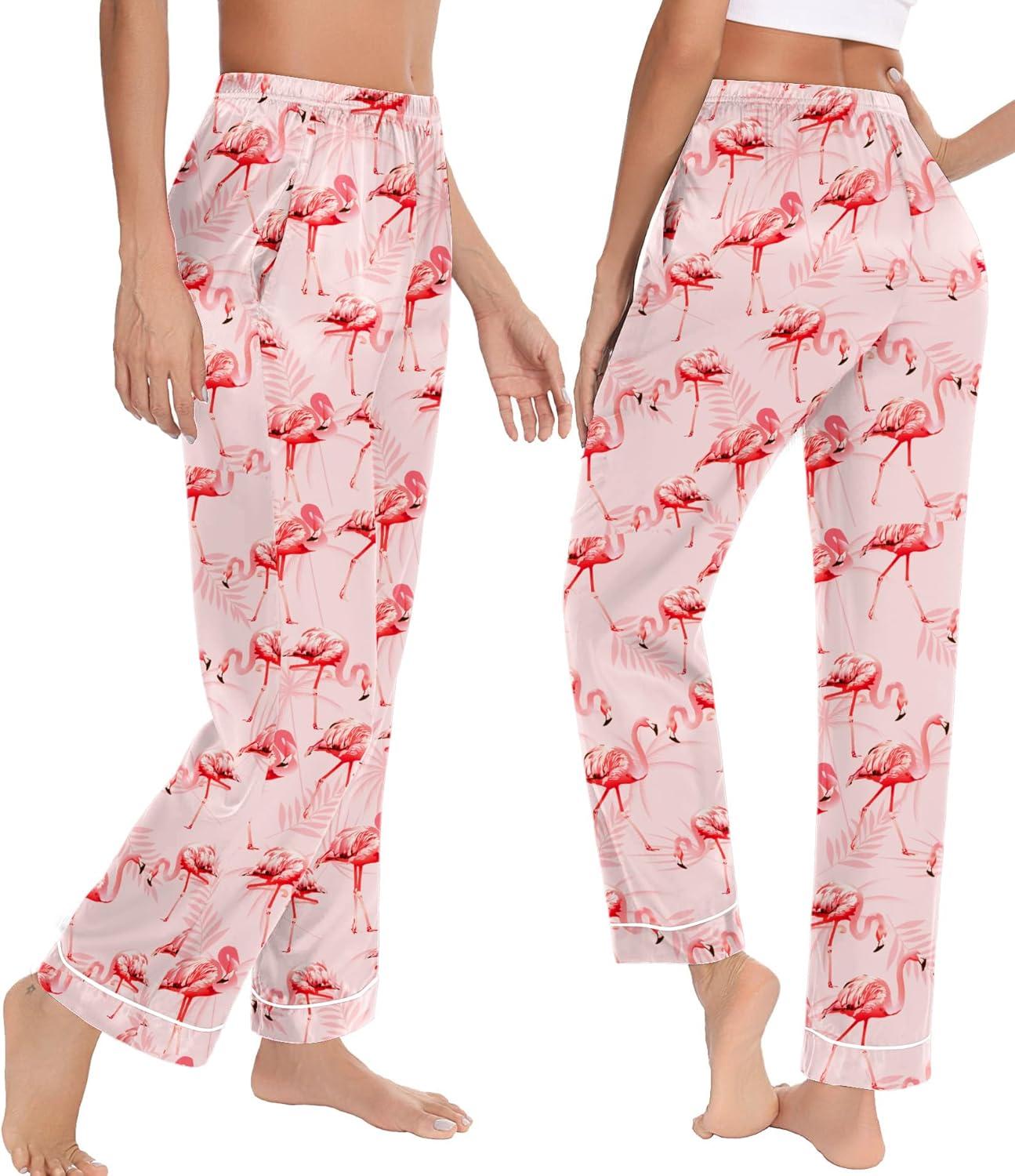 imageSWOMOG Womens Silk Satin Pajama Pants Longs Silky Sleep Pants Loungewear Trousers Elastic Waist Lounge Pj BottomsPippingflamingo Pink