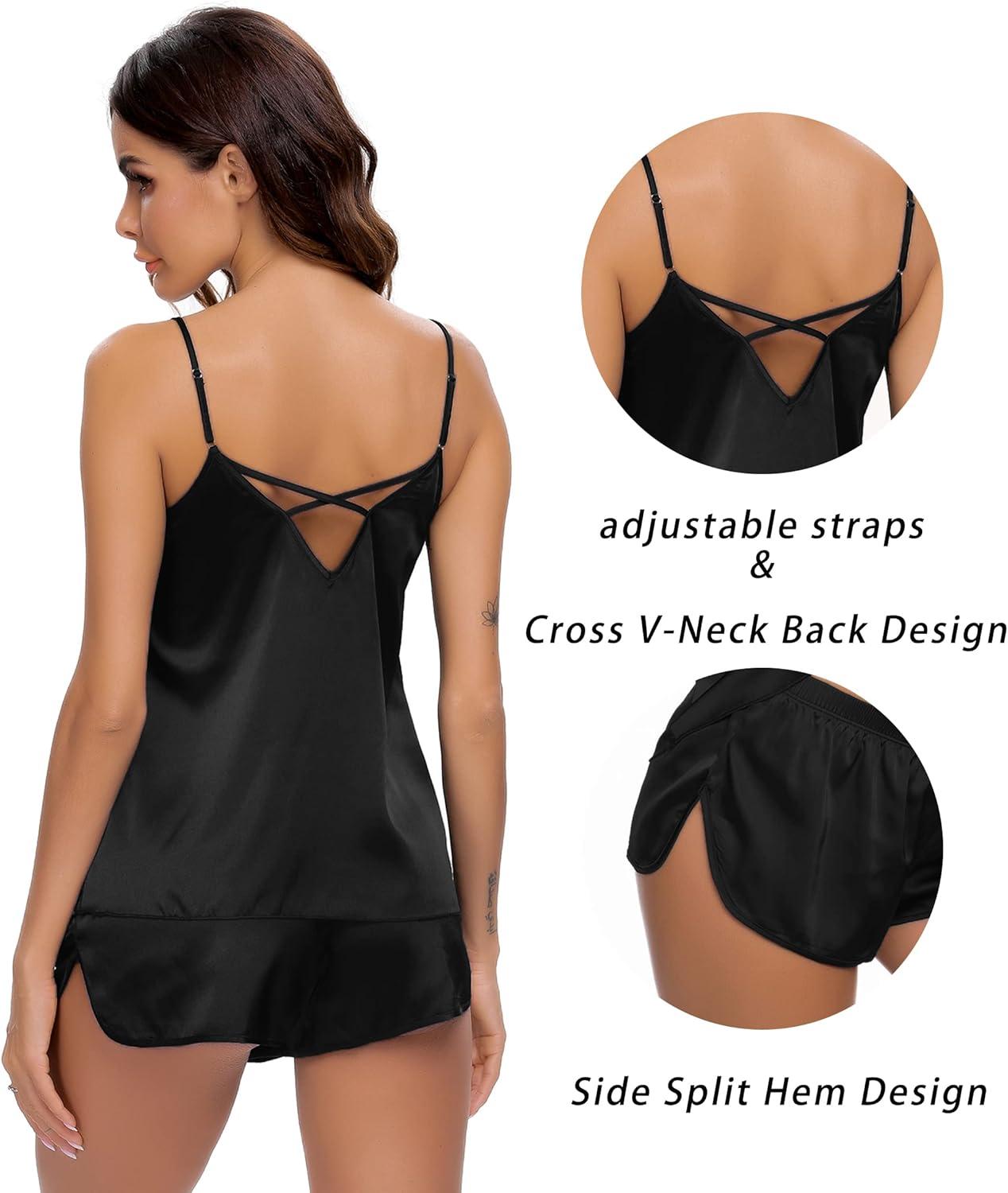 Be the first to review “SWOMOG Womens Silk Satin Pajamas Sets 4pcs Loungewear Sexy Cami Shorts Set Button Down Long Sleeve Pjs Sleepwear(Long Sleeve Classic-black)”